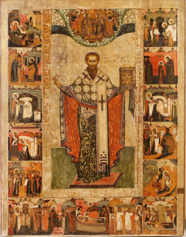 Стефан Пермский, с житием. Третья четверть XVII века. 141х110 см. Вологодский государственный историко-архитектурный и художественный музей-заповедник