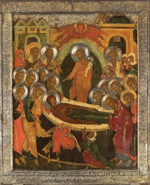 Эта икона посвящена Успению Пресвятой Богородицы.