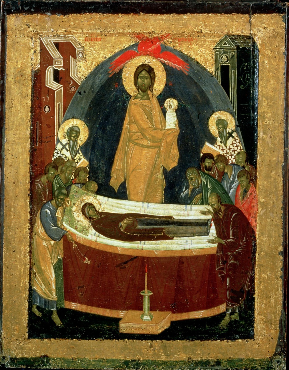 Эта икона посвящена Успению Пресвятой Богородицы.