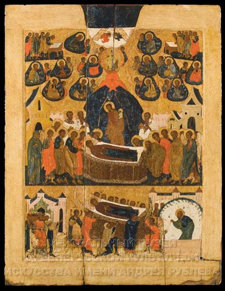 Эта икона посвящена Успению Пресвятой Богородицы.