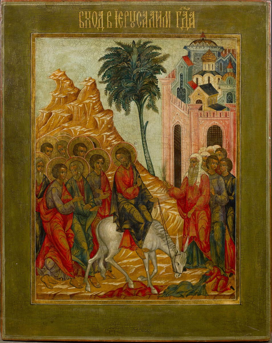 Эта икона посвящена Входу Господню в Иерусалим.