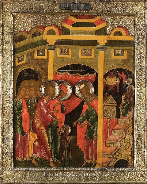 Эта икона посвящена Введению во храм Пресвятой Богородицы.