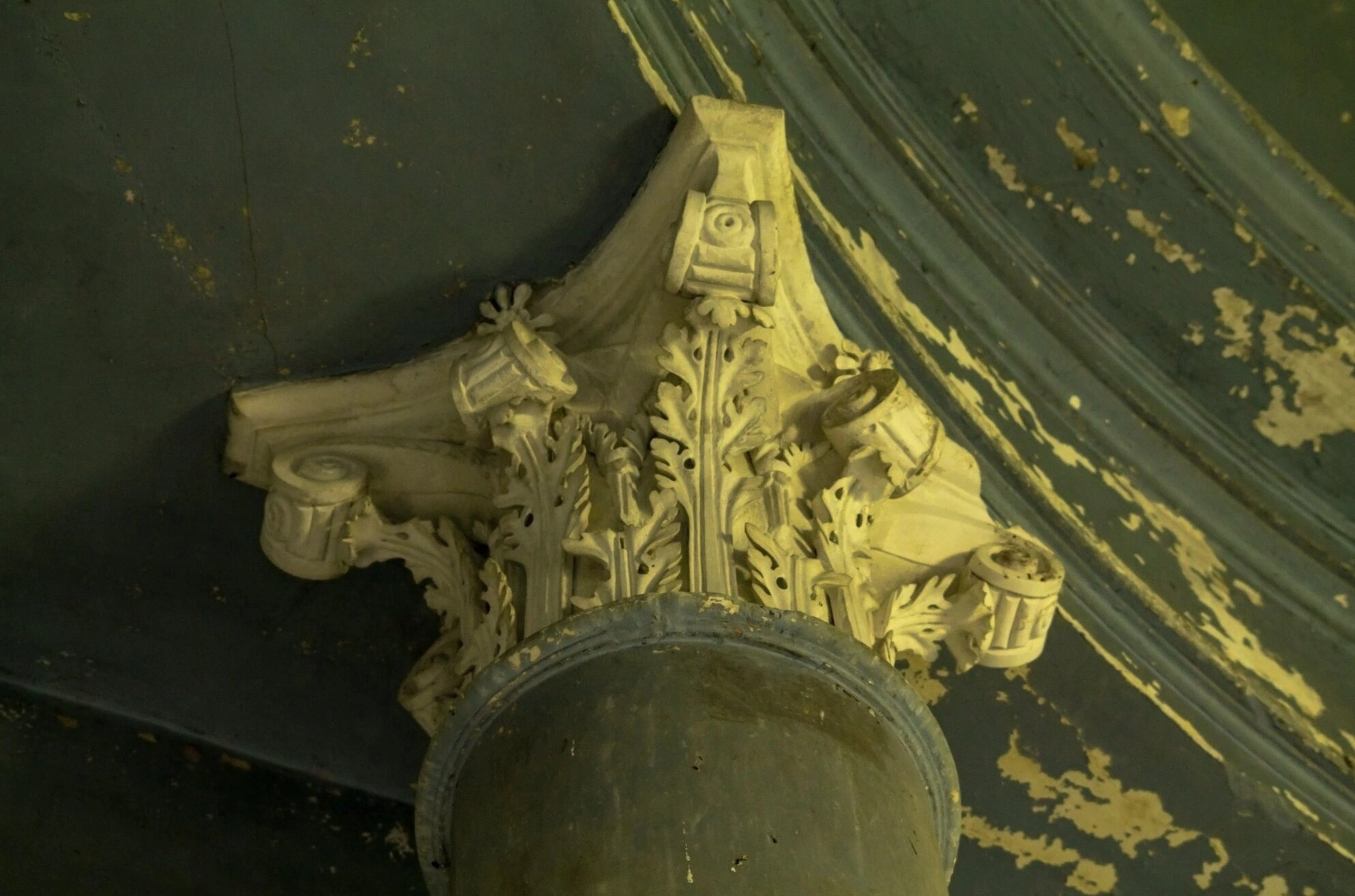 Основу декора капители составляют стилизованные листья аканта, символизирующие в христианской традиции жизнь вечную и не увядающую благодать Божию. Завитки-волюты, венчающие композицию, придают детали торжественность и завершённость, характерные для церковной архитектуры.