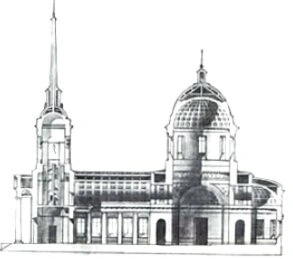 - Архитектурный чертеж Александро-Невского собора в Ижевске