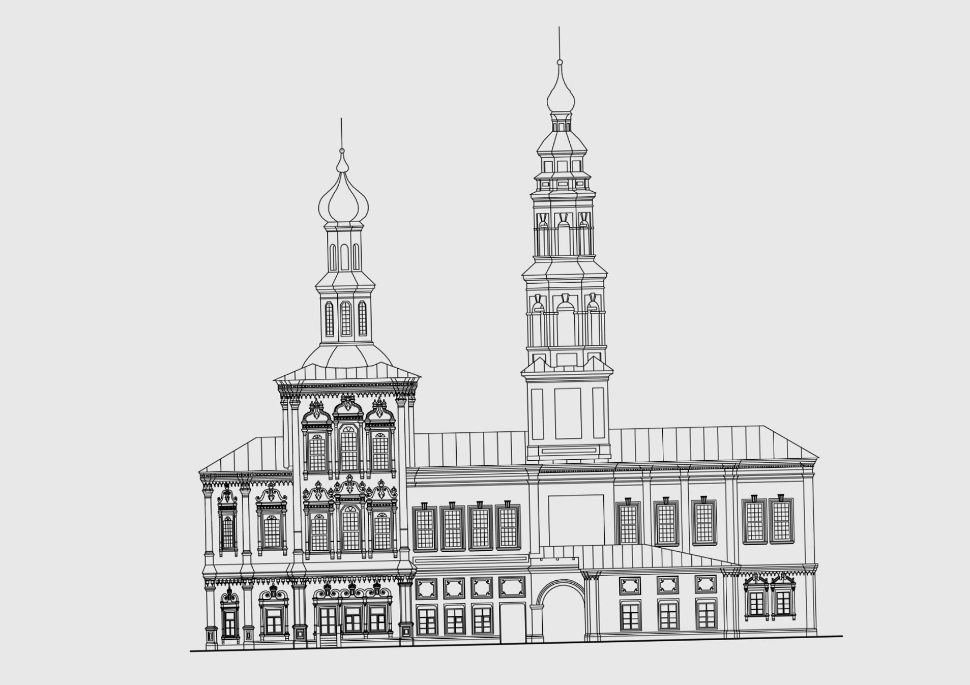 - Архитектурный чертеж фасада Иоанно-Предтеченской церкви в Соликамске