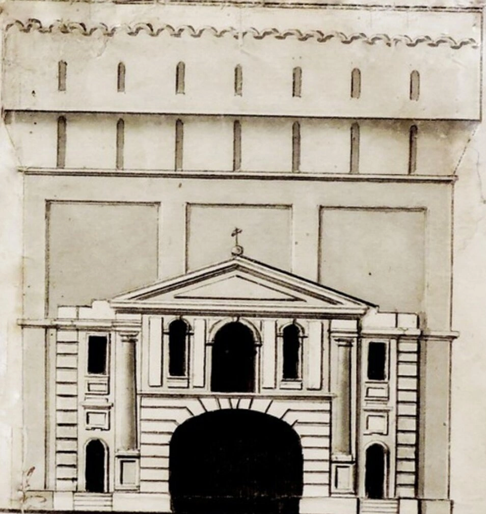 Архитектурный чертеж Красных ворот и Знаменской церкви в Ярославле