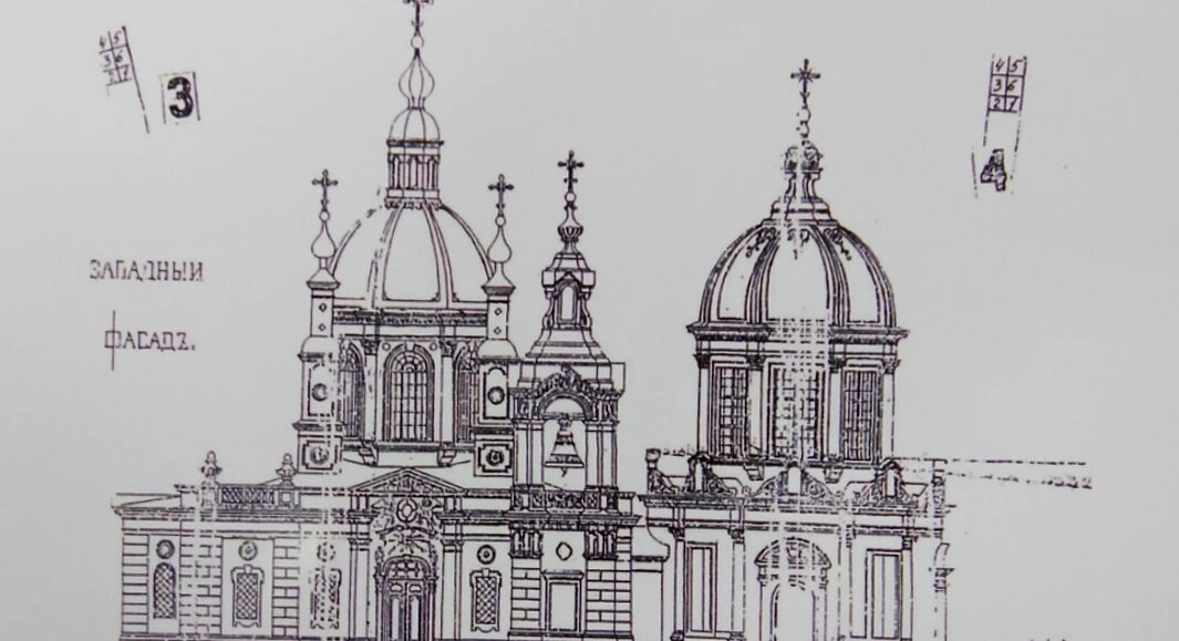 - Архитектурный чертеж западного фасада Церкви Знамения в усадьбе Перово