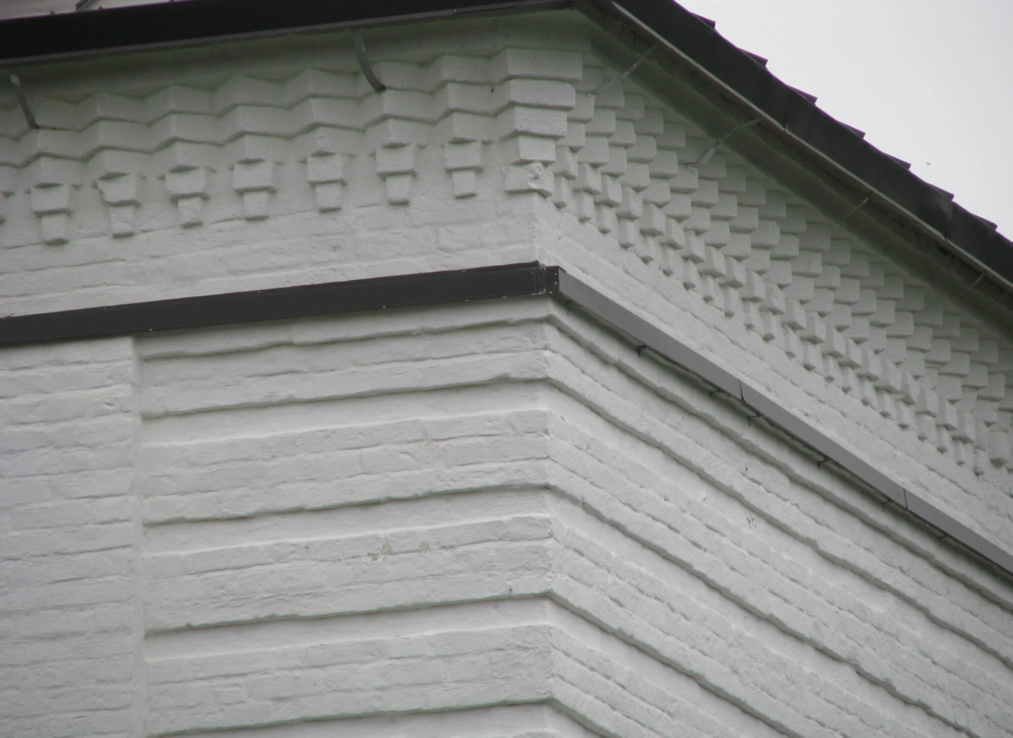 Верхнюю часть композиции венчает рельефный орнамент, выполненный из выступающего кирпича и образующий под кровлей сложный геометрический узор. Этот декоративный элемент не только украшает фасад, но и несёт в себе глубокий символический смысл, напоминая верующим о непрерывности Божественного промысла и гармонии мироздания.