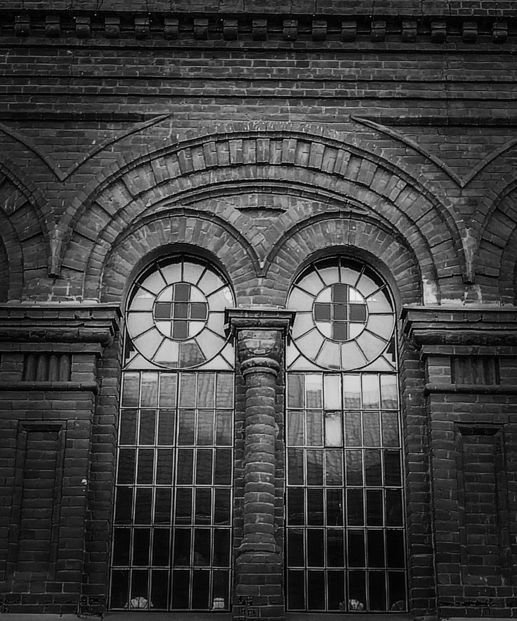 Вся поверхность стены богато украшена декоративными элементами, выполненными из фигурного кирпича: архивольты арок, импосты, горизонтальные пояса-тяги и филёнки. Подчёркнутая фактура кирпичной кладки, выполненной со строгим соблюдением уровней, свидетельствует о высоком мастерстве каменщиков. Монохромный формат фотографии позволяет сосредоточить внимание на игре света и тени, выявляющей пластику поверхности и создающей возвышенное, строгое настроение, что позволяет глубже ощутить монументальность и духовную мощь святого места.