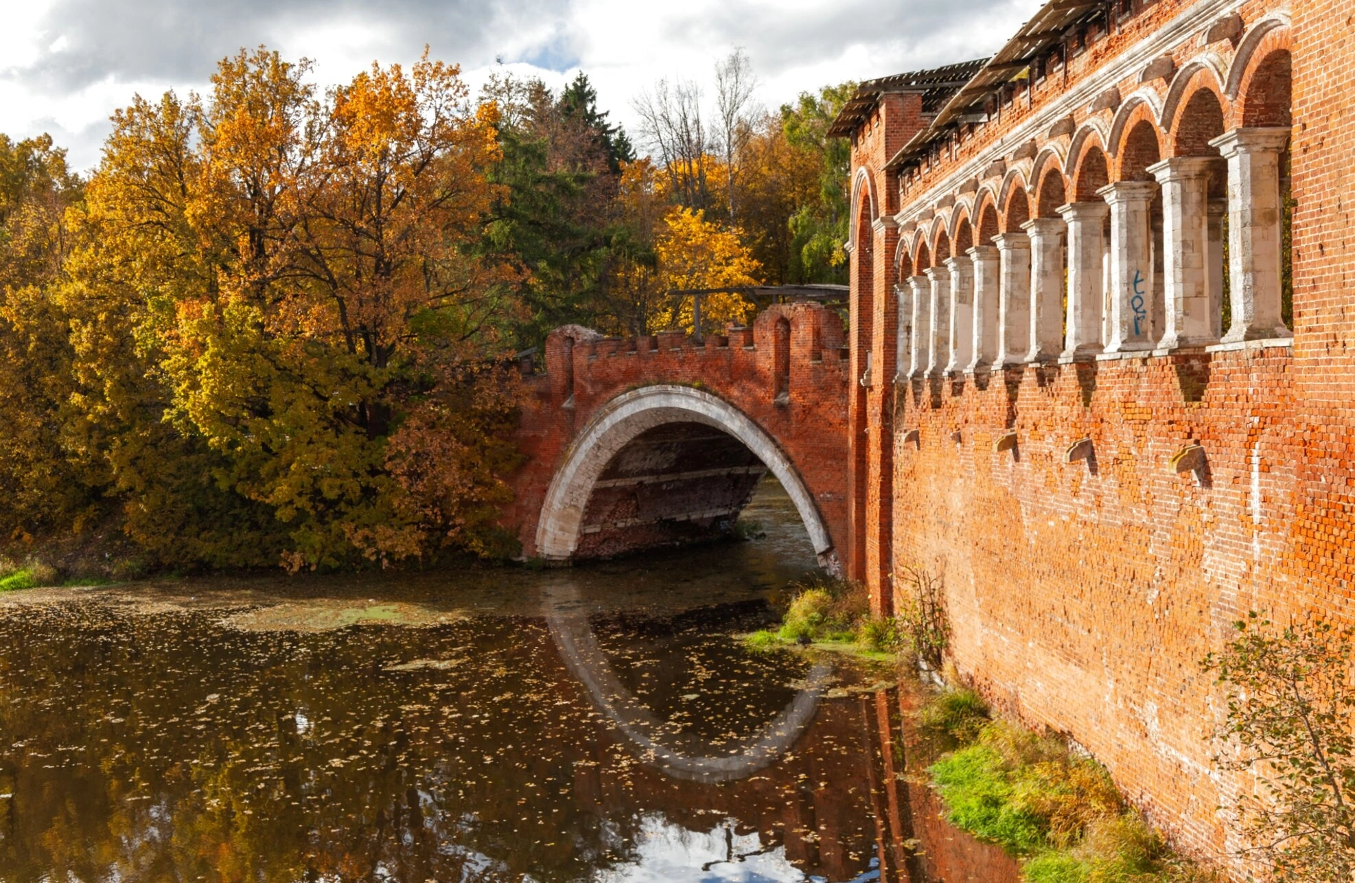 Арочный мост и храмовый комплекс в усадьбе Марфино