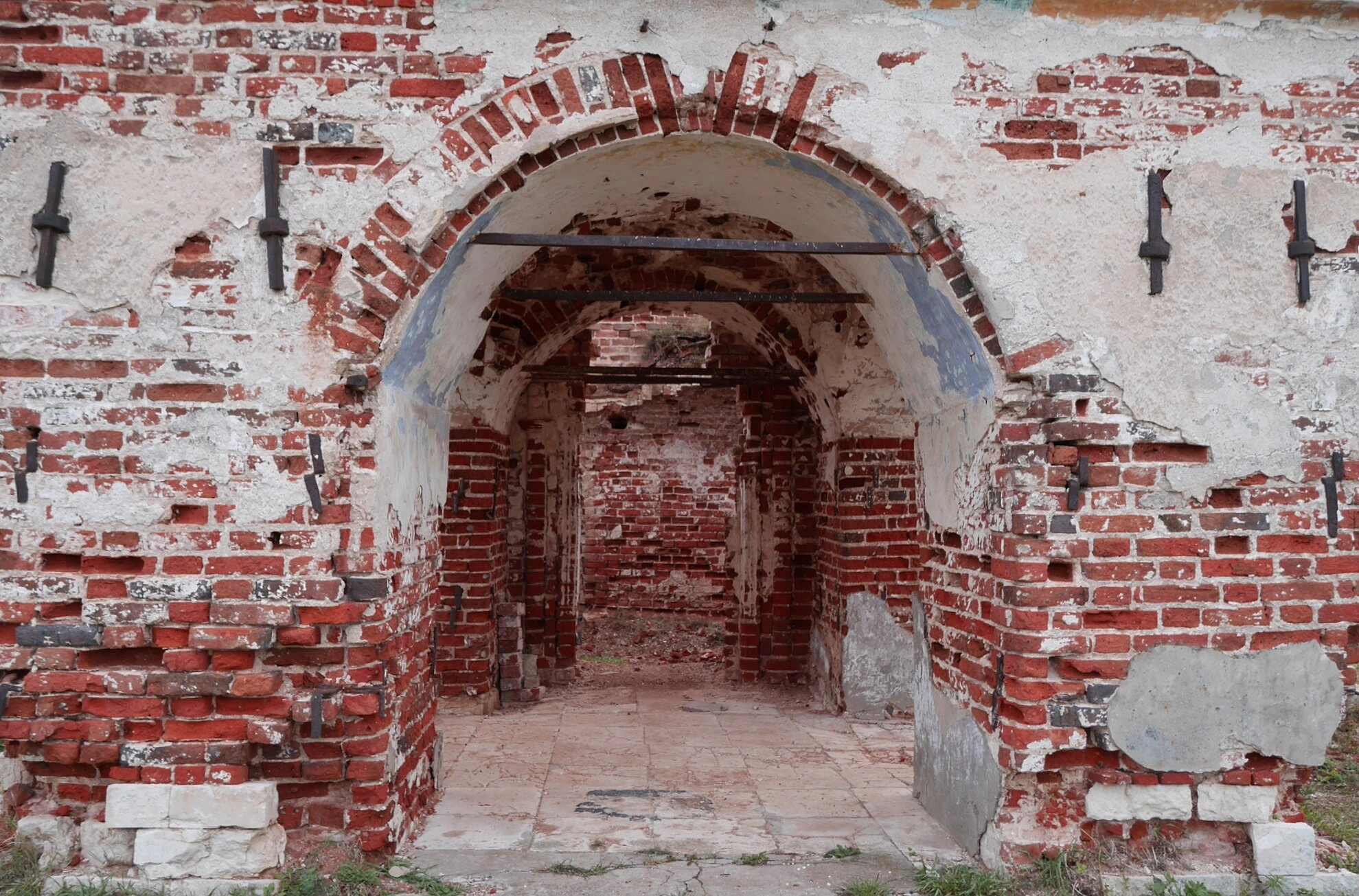 Арочная конструкция, изображённая на снимке, демонстрирует характерные особенности храмового зодчества, где каждый архитектурный элемент имеет не только практическое, но и глубокое духовное значение. Кирпичная кладка, выполненная с высочайшим мастерством, свидетельствует о традициях русского церковного строительства.
