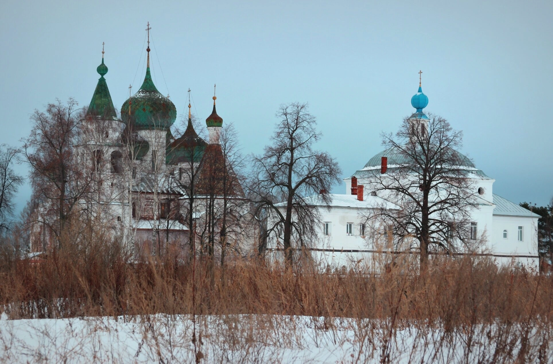 Архитектурный ансамбль, представленный на фотографии, преимущественно сложился в XVII-XIX веках и представляет собой уникальный пример русского церковного зодчества. Богоявленский собор, построенный в 1553 году по повелению царя Иоанна Грозного, хранит память о важных исторических событиях и духовных подвигах многих поколений иноков. Сегодня монастырь является действующей православной обителью, привлекающей многочисленных паломников и ценителей церковной архитектуры.