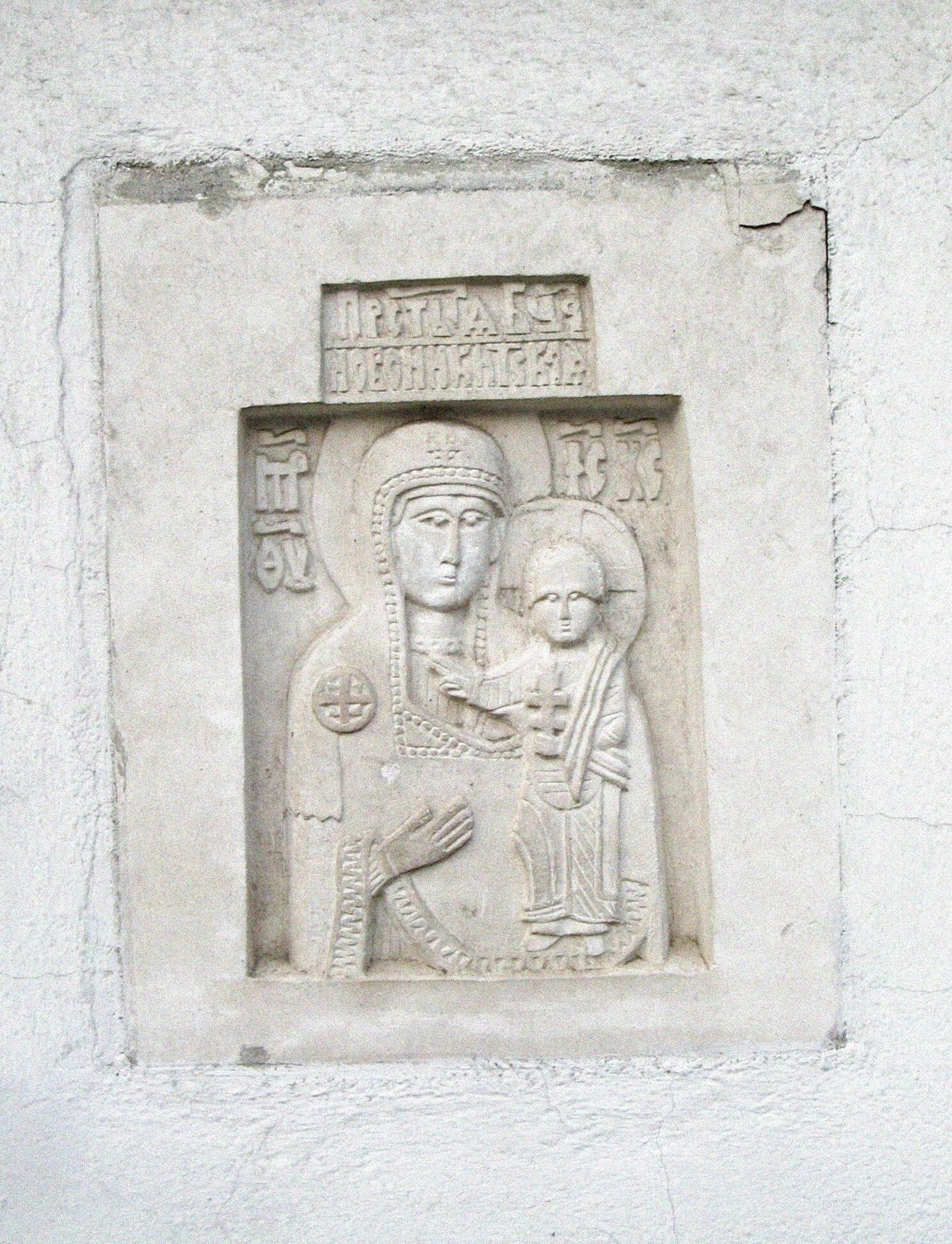 - Белокаменный рельеф Богородицы на ограде Храма Малого Вознесения