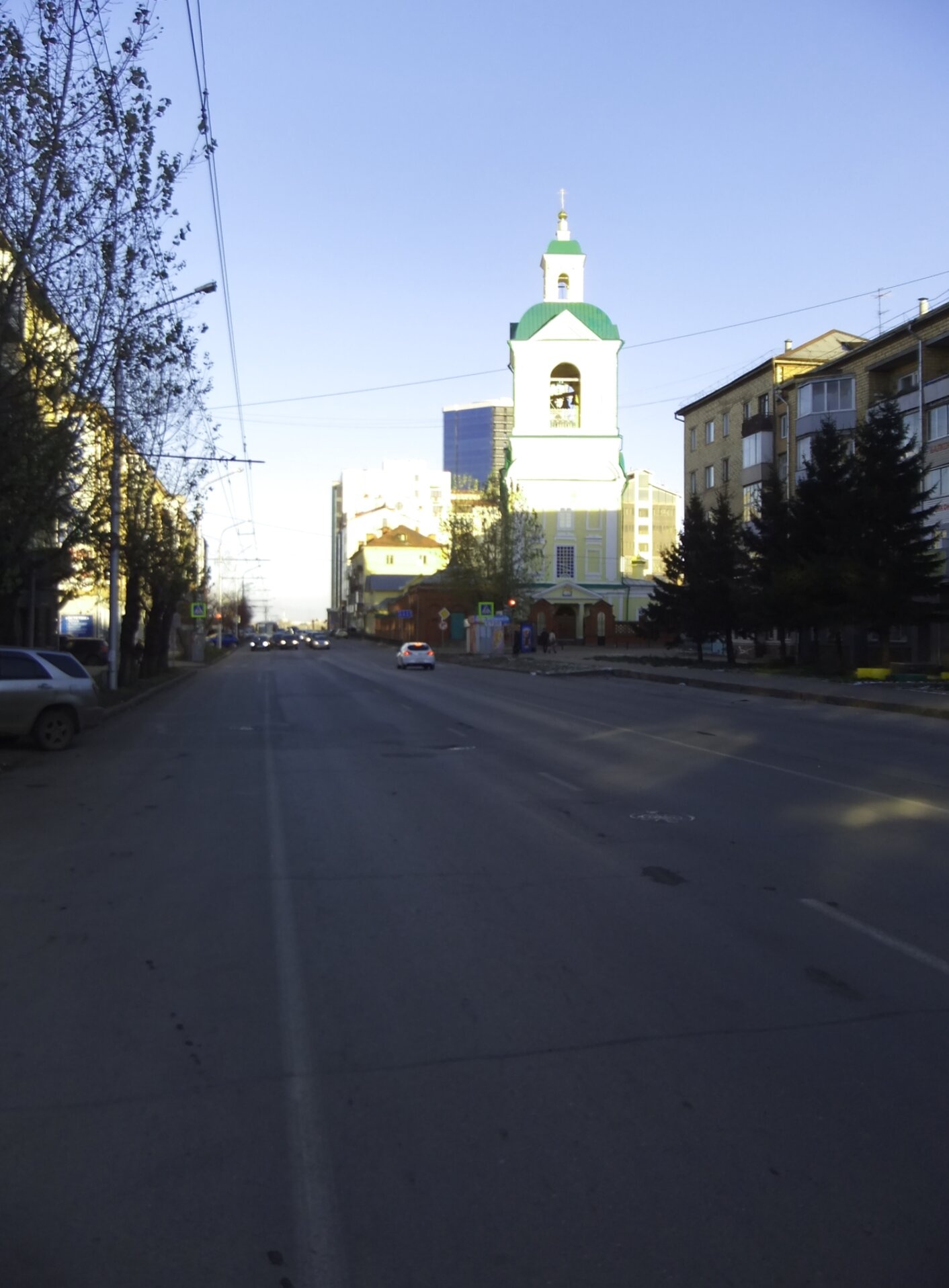 На представленной фотографии запечатлён величественный облик Благовещенской церкви, одного из старейших каменных храмов города Красноярска. Святыня, освящённая в честь Благовещения Пресвятой Богородицы, является выдающимся памятником сибирской церковной архитектуры и неотъемлемой частью исторического наследия края.