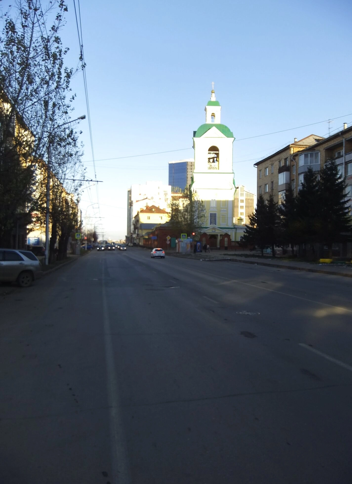 На представленной фотографии запечатлён величественный облик Благовещенской церкви, одного из старейших каменных храмов города Красноярска. Храм, освящённый в честь Благовещения Пресвятой Богородицы, является выдающимся памятником сибирской церковной архитектуры и имеет богатую духовную историю.