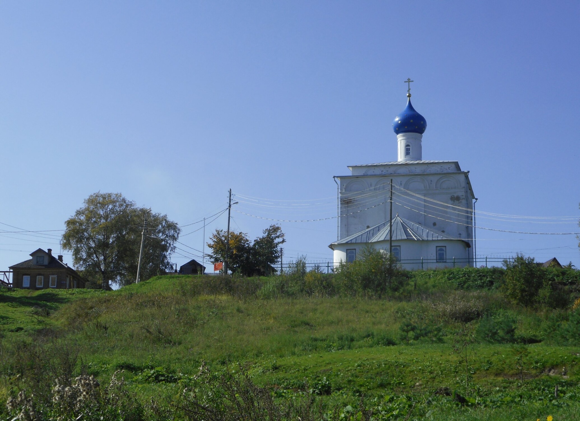 На представленной фотографии запечатлена жемчужина православного зодчества Ярославской земли — Благовещенская церковь, расположенная в древнем городе Тутаеве на правом берегу реки Волги. Храм освящён в честь Благовещения Пресвятой Богородицы и является выдающимся памятником русской архитектуры второй половины XVII века.