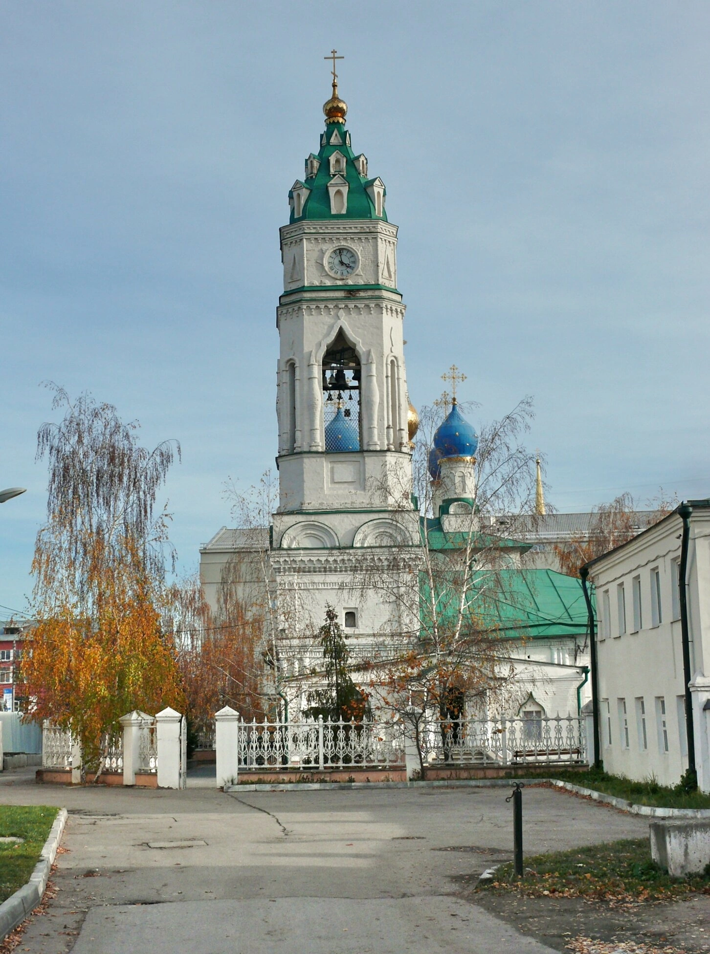 На снимке хорошо просматривается мощный кубический объём основного храма, увенчанный традиционным пятиглавием. Шатровая колокольня, являющаяся неотъемлемой частью ансамбля, устремляется ввысь, символизируя молитвенное горение к Небесам. Фасад здания украшен скромным, но изящным декором, что придаёт всей постройке особую благородную солидность.
