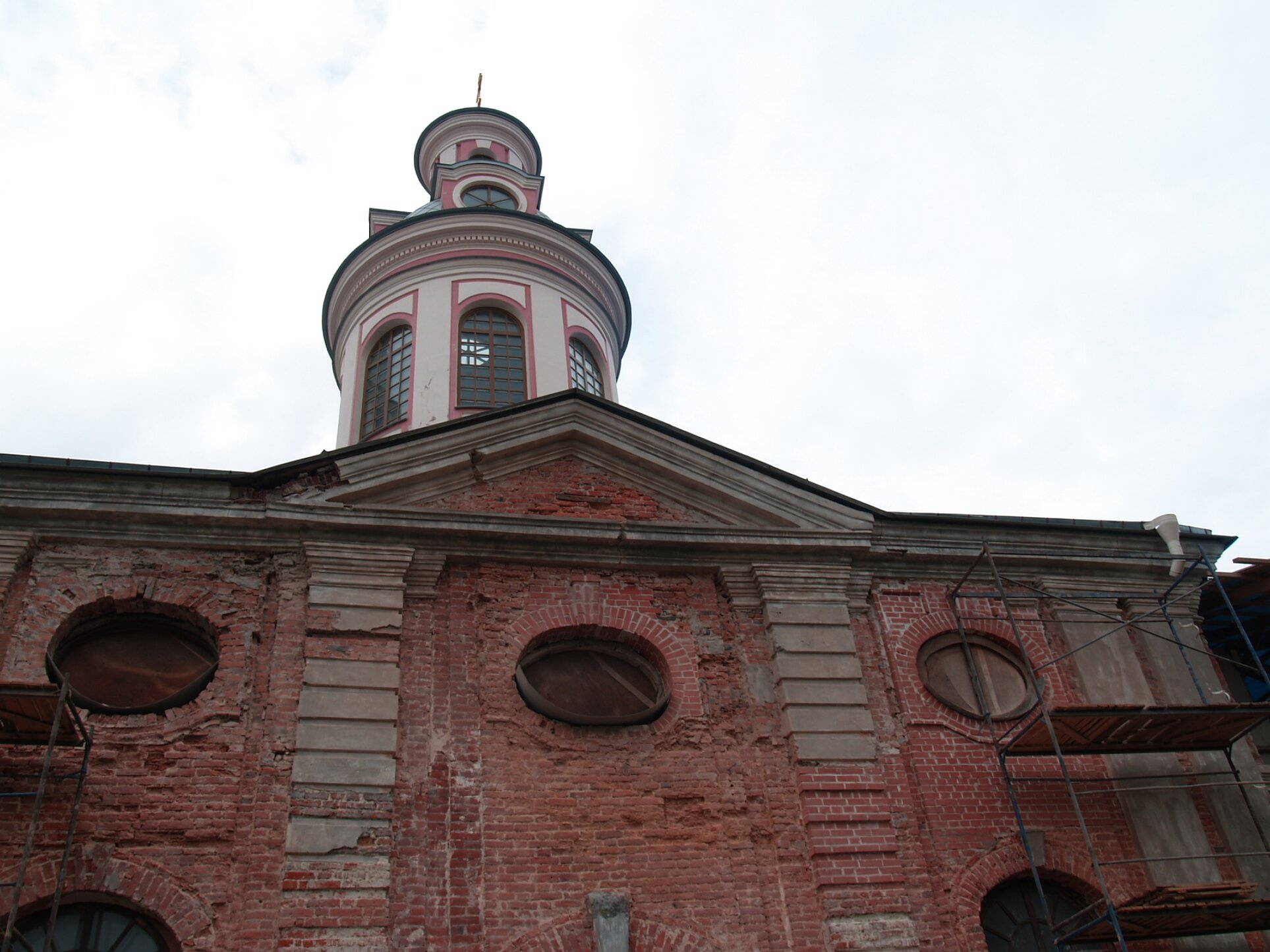 В момент съёмки собор находился в процессе реставрационных работ, о чём свидетельствуют установленные вдоль фасада строительные леса. Это подчёркивает непрекращающиеся усилия по сохранению исторического и духовного наследия. Чётко видны арочные и круглые оконные проёмы, а также детали декора — карнизы и наличники, придающие зданию особую выразительность и благолепие.