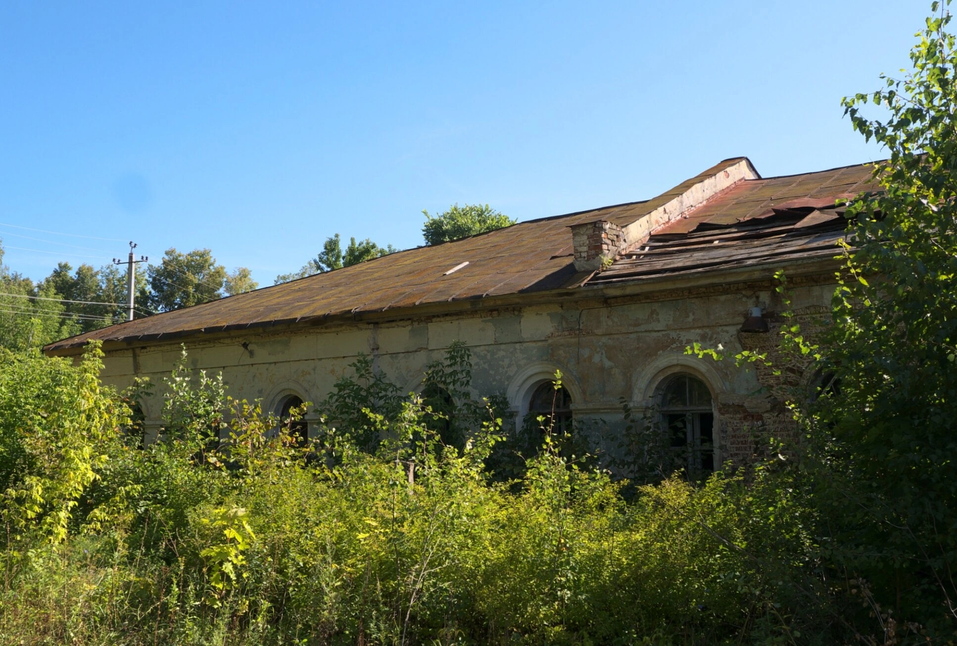 На представленной фотографии запечатлена Богородицерождественская церковь, расположенная в селе Черкизово Коломенского городского округа Московской области. Храм находится в плачевном состоянии: стены частично разрушены, кровля отсутствует, а само здание интенсивно заросло древесной растительностью и кустарником.