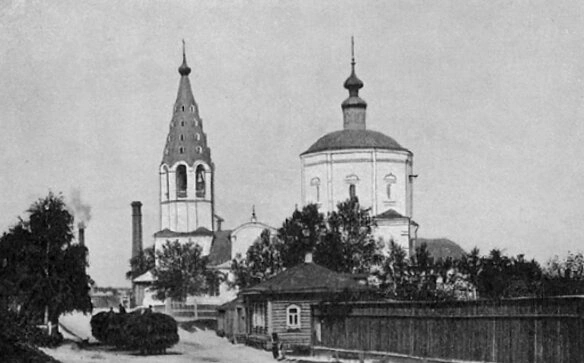 Окружающая храм обстановка свидетельствует о его расположении в месте, где исторически переплетались жилая застройка и промышленные зоны. Деревянные дома и ограждения, видимые на фотографии, создают атмосферу провинциального города XIX - начала XX века. Присутствующая на переднем плане растительность подчёркивает единство творения рук человеческих и божественной природы.