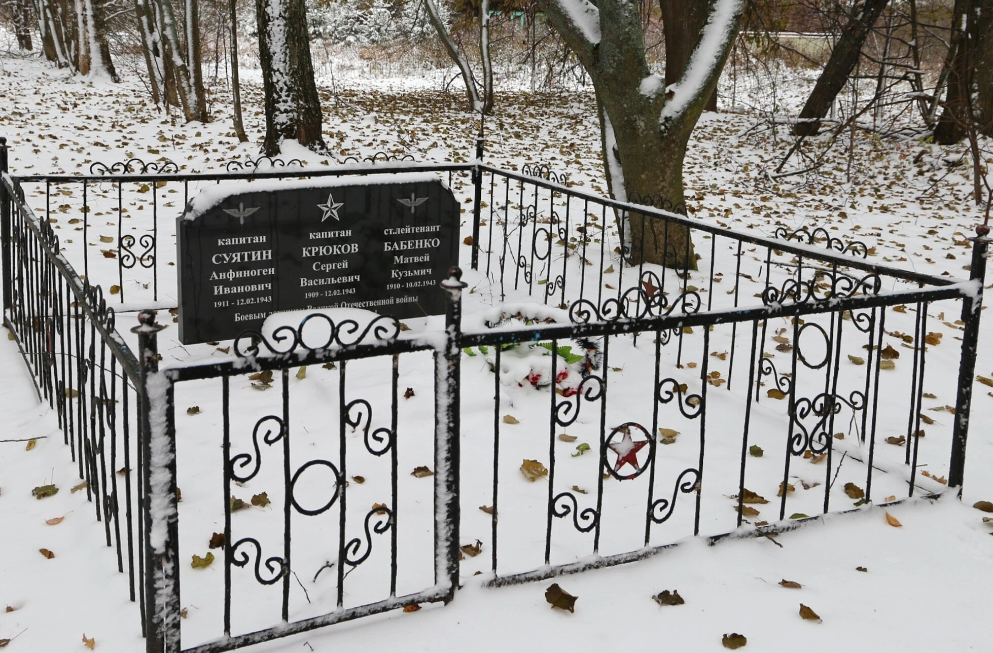 Памятный обелиск содержит высеченные имена и даты жизни четырех военнослужащих: капитана Суятина Анфиногена Ивановича (1911-12.02.1943), капитана Крюкова Сергея Васильевича (1909-12.02.1943), капитана Бабенко Матвея Кузьмича (1910-18.01.1943) и старшего лейтенанта. Место захоронения благоустроено и окружено кованой металлической оградой с декоративными элементами, выполненными в традиционном стиле.