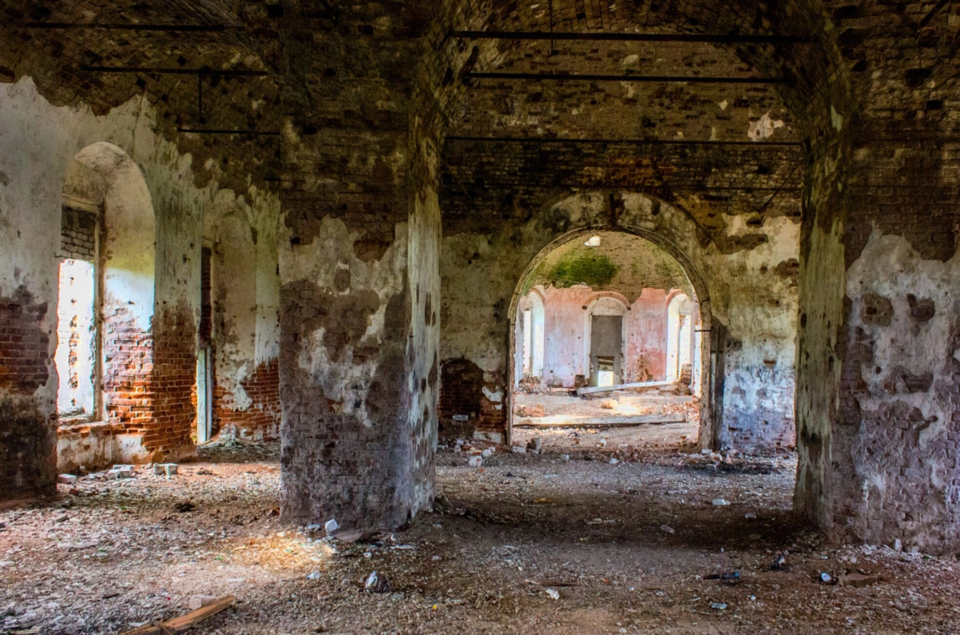 Внутреннее пространство храма имеет трёхпрестольную структуру. Главный престол освящён в честь Рождества Христова. Правый придел посвящён святому пророку Божию Илии, а левый — святому благоверному князю Александру Невскому. На снимке видны характерные элементы церковной архитектуры: арочные проёмы, колонны и сводчатые перекрытия, создающие возвышенную молитвенную атмосферу.