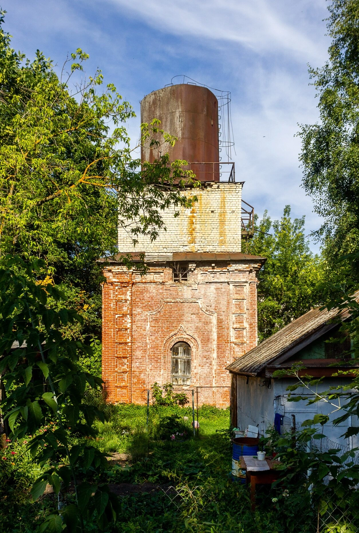 Особенностью данного сооружения является его последующее использование в качестве водонапорной башни, о чём свидетельствует массивный металлический резервуар, установленный на крыше бывшего храма. Эта перестройка отражает сложный период в истории русских православных святынь, когда многие церковные здания были приспособлены для хозяйственных нужд.