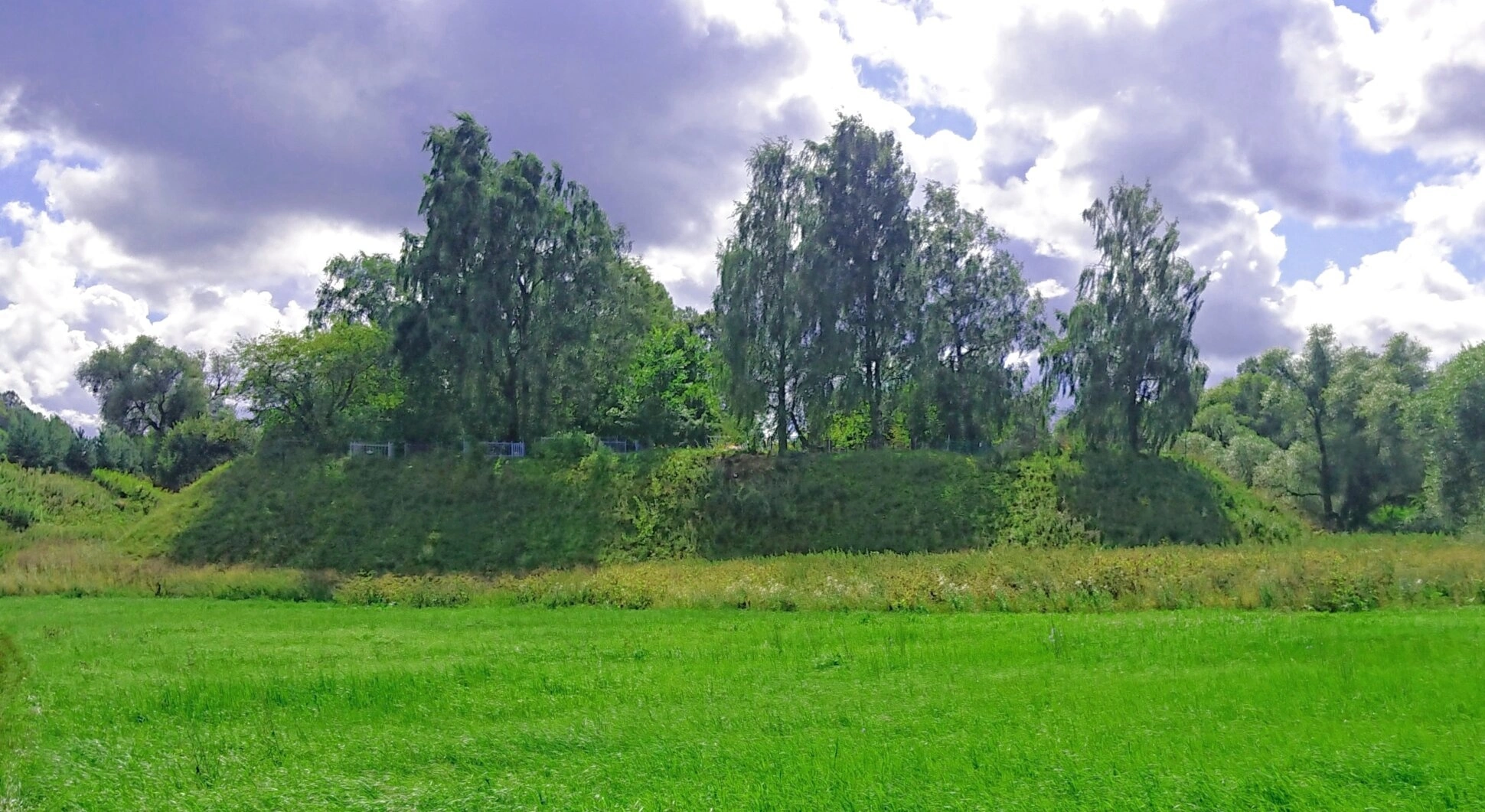 На представленной фотографии запечатлён живописный холм, расположенный в окрестностях села Высокиничи Калужской области. Данная местность имеет особое духовное значение, поскольку именно здесь ранее возвышалась Церковь во имя святого благоверного князя Александра Невского, также известная как храм Николая Чудотворца.