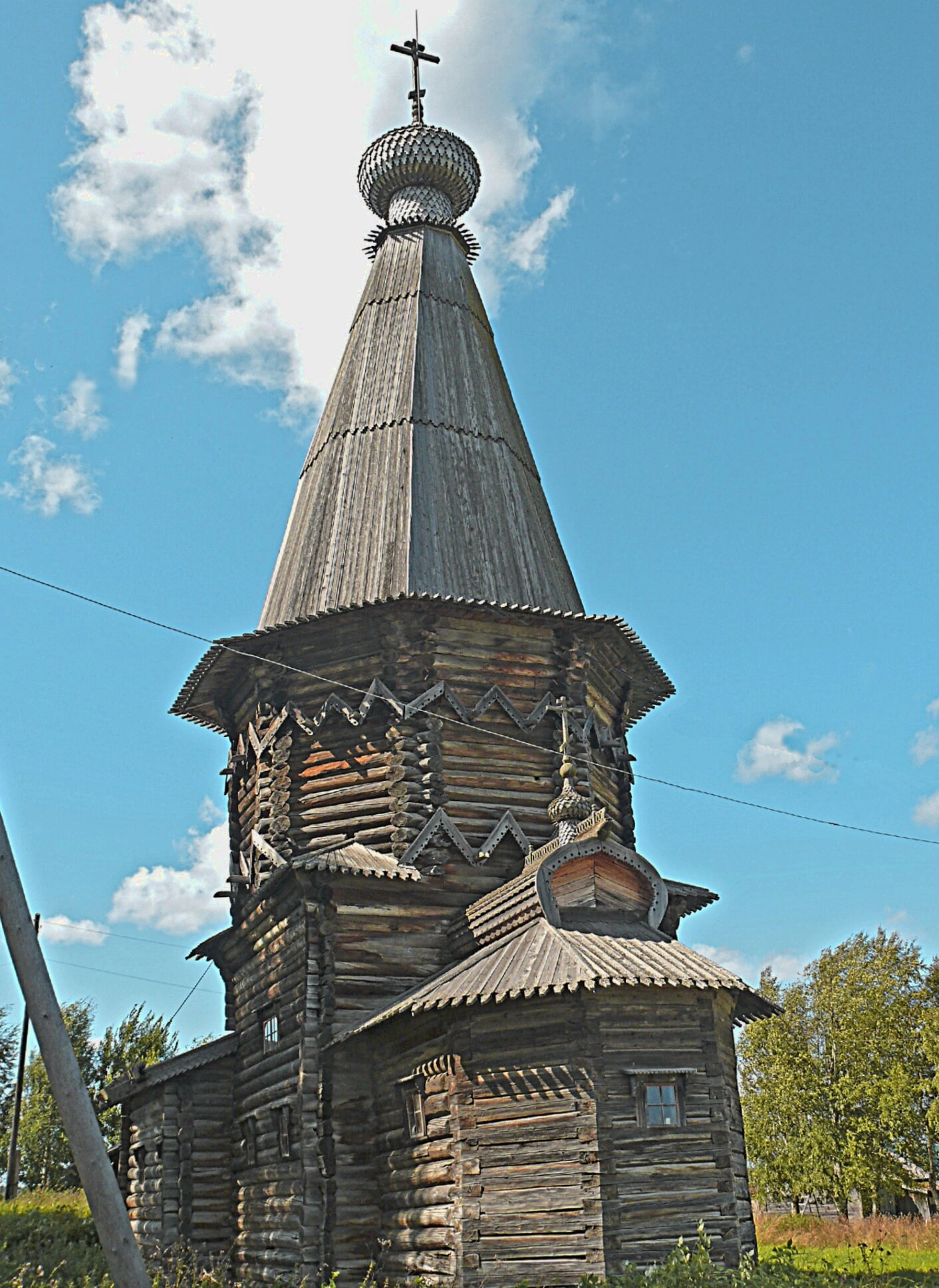 Храм представляет собой классический тип клетской церкви с шатровым завершением. С западной стороны к основному объёму прирублена трапезная, а с восточной – алтарный прируб, покрытый двускатной кровлей. Скромное убранство фасадов и лаконичность форм подчёркивают духовную строгость и величие православной святыни. Несмотря на скромные размеры, церковь обладает особым благолепием и гармонией пропорций, присущей лучшим образцам деревянного храмостроительства Русского Севера.