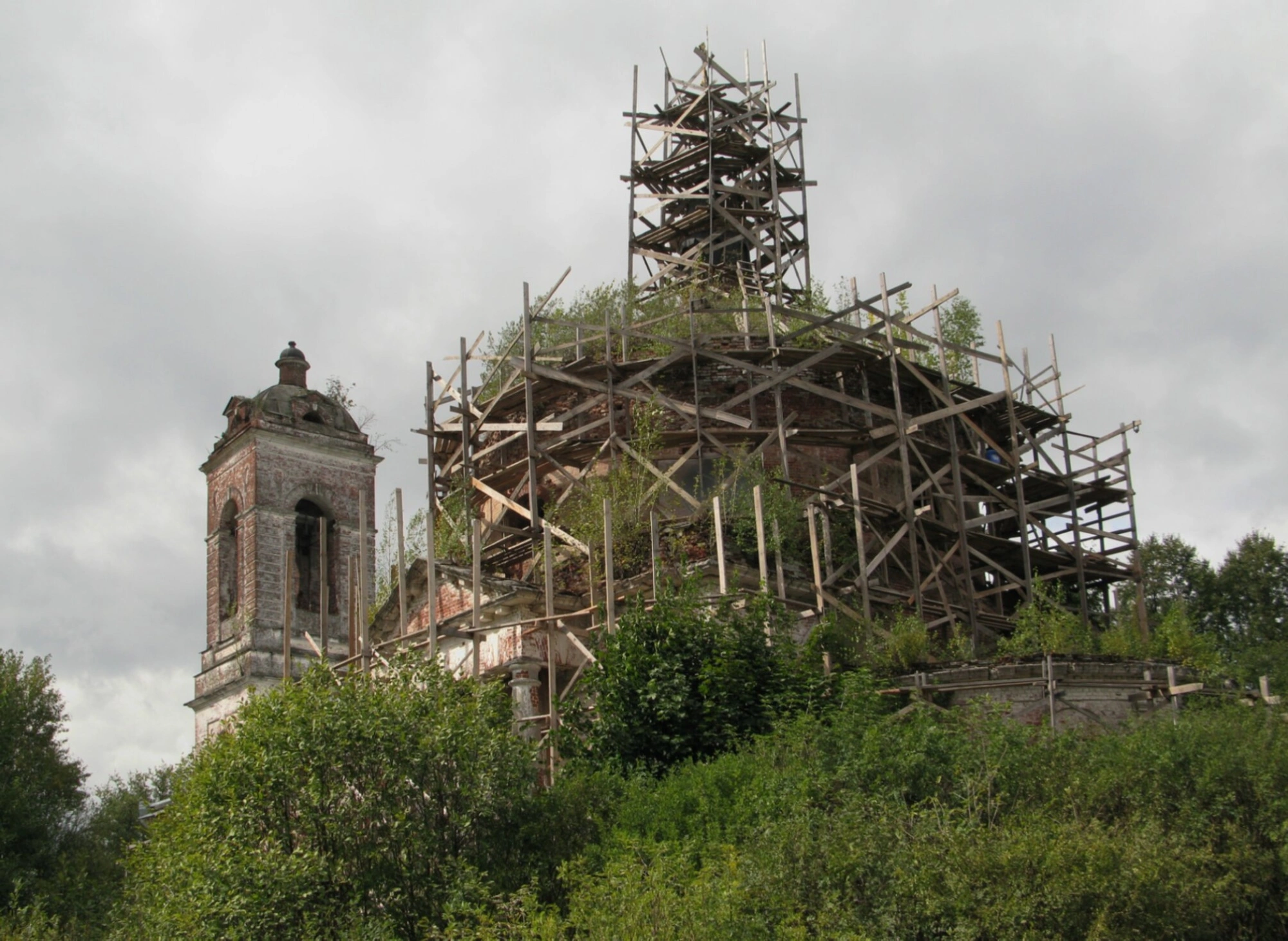 Храм пребывает в полуразрушенном состоянии, что свидетельствует о сложной истории данного духовного объекта. Основной объем церкви и купол окружены деревянными строительными лесами, которые были установлены в рамках реставрационных работ, направленных на сохранение архитектурного наследия.