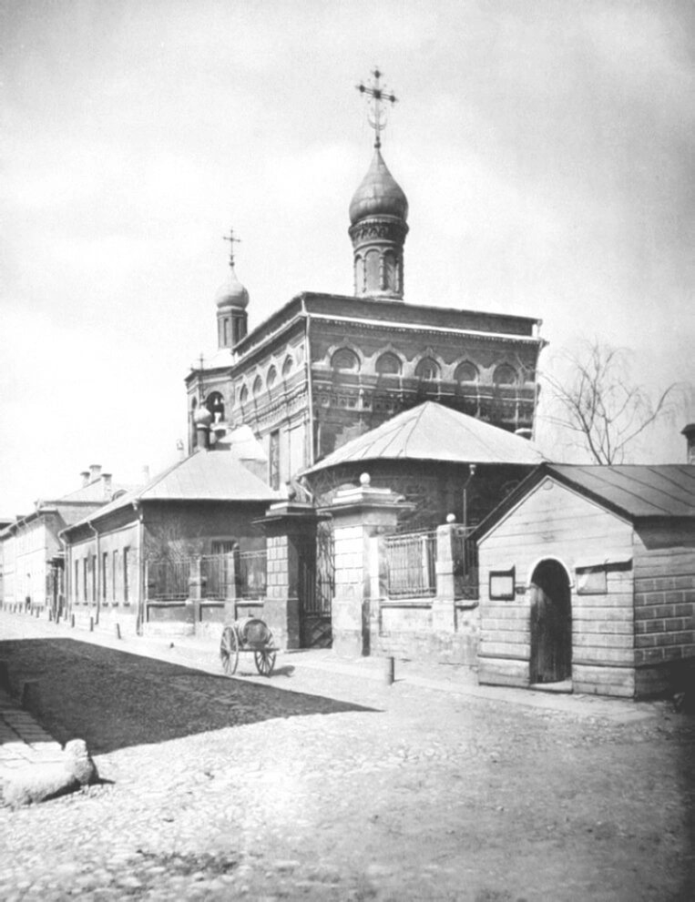 На представленной исторической фотографии запечатлен вид старинного православного храма — Церкви Архангела Михаила в Овчинниках, что расположена в Замоскворечье. Снимок, выполненный в начале XX столетия, передаёт уникальную атмосферу старой Москвы и позволяет увидеть архитектурный облик святыни до потрясений революционной эпохи.