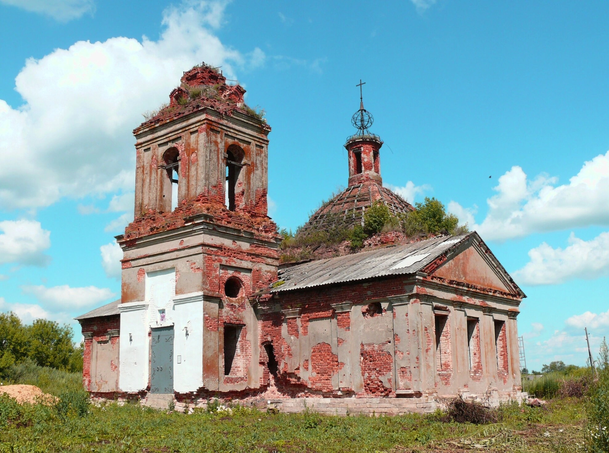 Кирпичное здание церкви, несмотря на значительные повреждения, сохраняет черты православной храмовой архитектуры. Состояние сооружения вызывает глубокую скорбь - утрачены кровля, оконные заполнения, частично обрушены стены. Однако даже в руинах храм сохраняет особую благодатную атмосферу и величие.