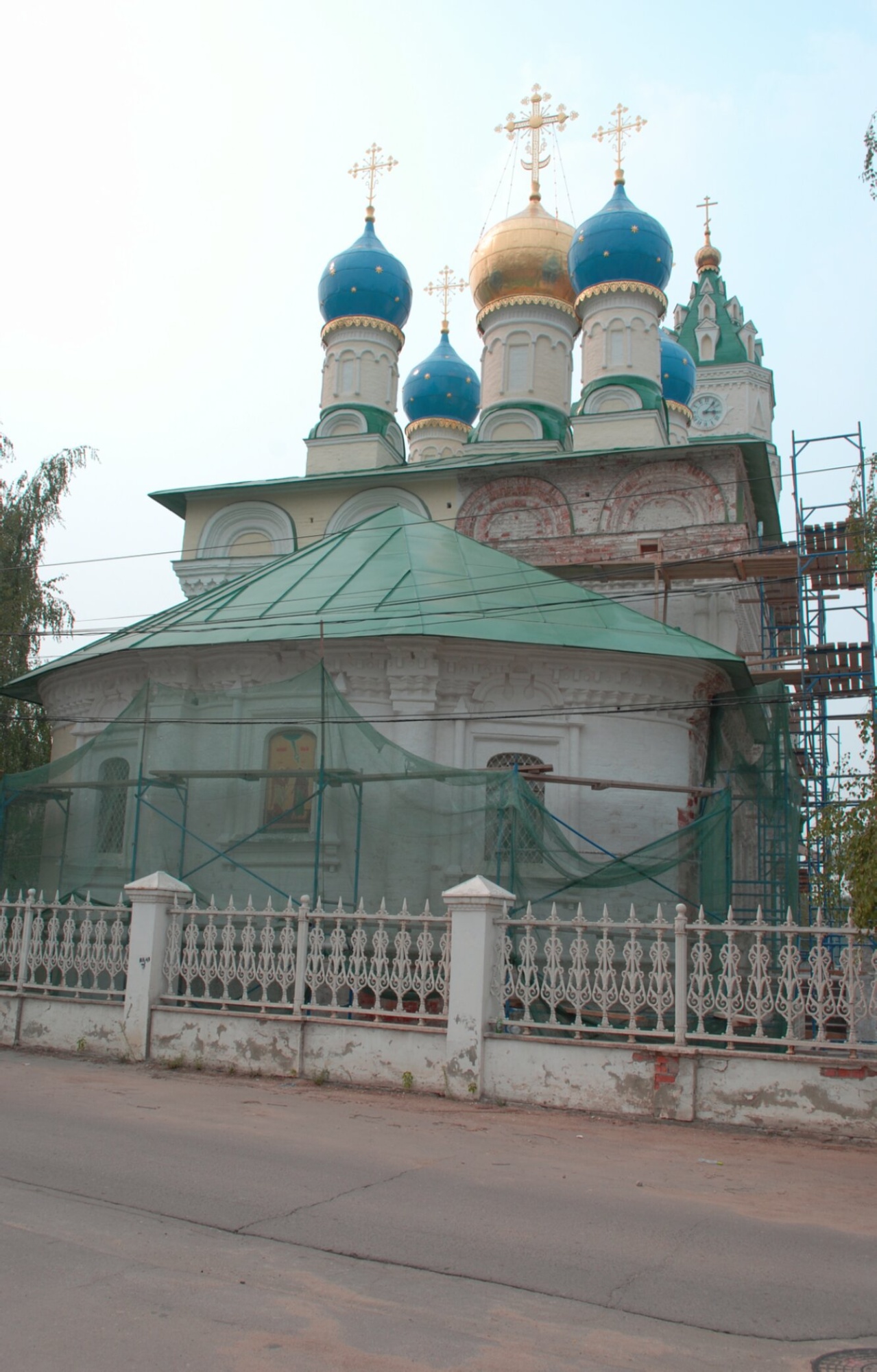 В момент съёмки храм находится на реставрации, о чём свидетельствуют установленные строительные леса и защитная сетка, бережно укрывающая его стены. Данные восстановительные работы направлены на сохранение этого уникального духовного и исторического памятника для будущих поколений. Храм обнесён ажурной оградой белого цвета, гармонирующей с его внешним видом.