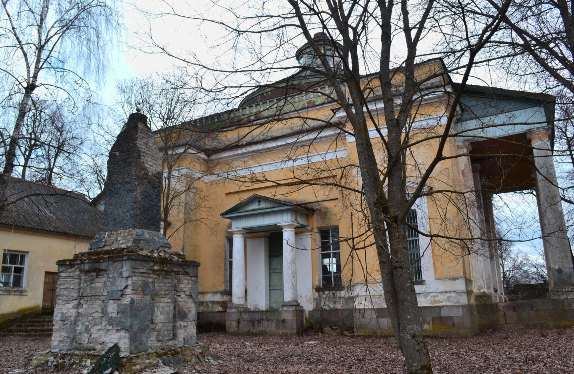 Каменная церковь была возведена в период между 1825 и 1845 годами на средства местных помещиков, сменив собой более древний деревянный храм. Архитектурный облик здания выполнен в стиле позднего классицизма, для которого характерны строгость форм, симметричность композиции и лаконичность декора. Основной объём храма завершается массивным световым барабаном, увенчанным куполом и главкой.