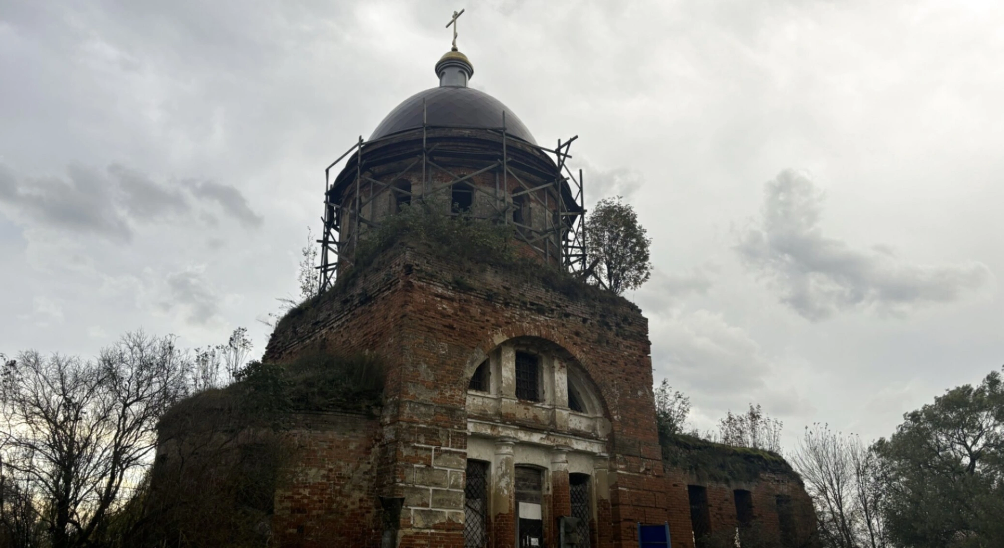 Окружающий пейзаж с пасмурным небом и дикорастущей растительностью подчёркивает драматическую историю храма, пережившего годы забвения. Однако наличие строительных лесов вселяет надежду на скорое возрождение этой намоленной святыни для будущих поколений.