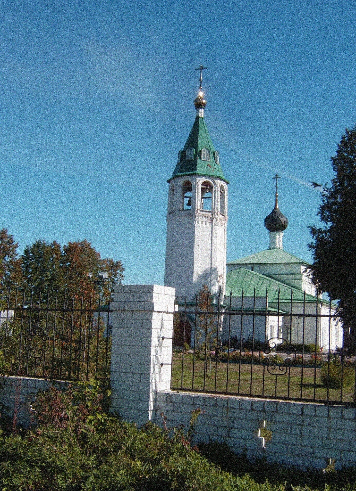 Белые стены храма символизируют духовную чистоту и благодать, а тёмная кровля создаёт благородный контраст, подчёркивая величие святыни. Церковь располагается в исторической части Городца, продолжая многовековую традицию православного благочестия этого старинного волжского города.