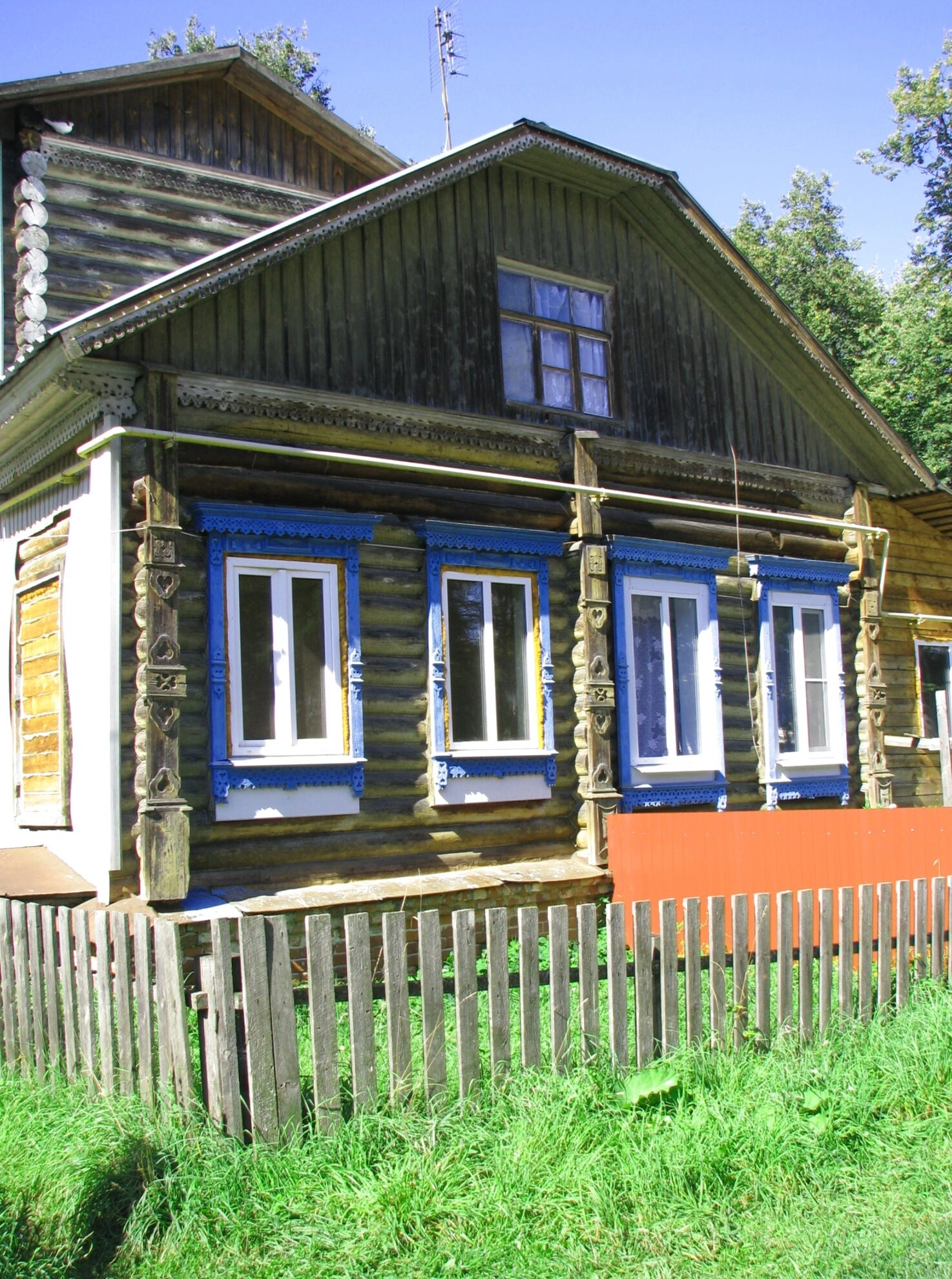 На представленной фотографии запечатлена Церковь преподобного Евфимия Суздальского, расположенная в селе Мугреево-Дмитриевское Южского района Ивановской области. Храм представляет собой деревянное строение, выполненное в традициях русского церковного зодчества.