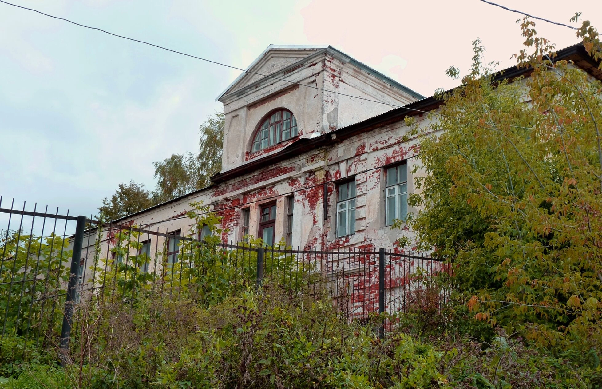 На представленной фотографии запечатлена церковь в честь святых мучеников Гурия, Самона и Авива, расположенная в исторической части города Мурома. Храм представляет собой памятник церковной архитектуры, находящийся в настоящее время в заброшенном состоянии.