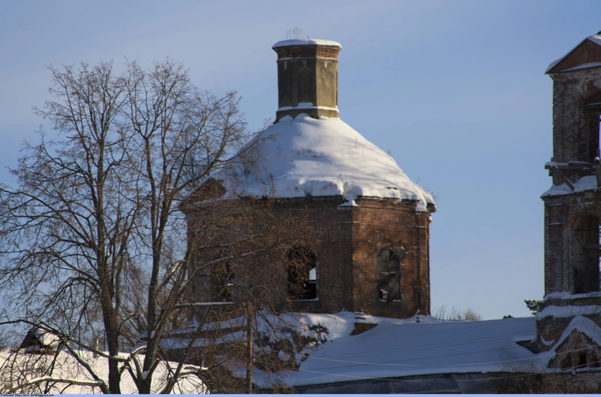 В настоящее время здание церкви пребывает в руинированном состоянии, о чём свидетельствуют заросшие травой стены и зияющие пустотой оконные проёмы. Однако даже в своём нынешнем виде храм сохраняет величие и является немым свидетелем истории православия на этой земле. Фотография передаёт не только архитектурные details сооружения, но и его глубокую символичность как памятника веры, пережившего годы лихолетья.