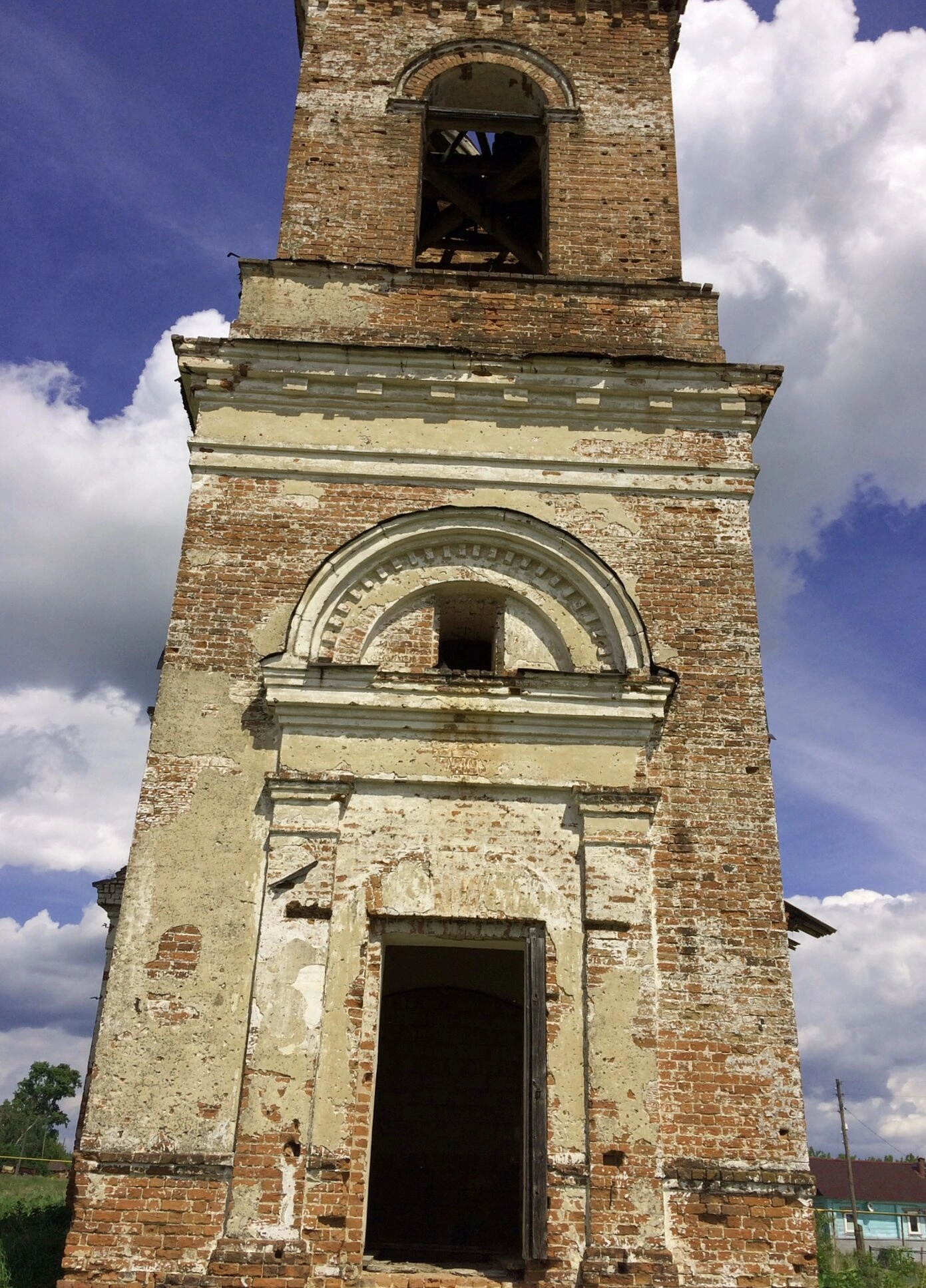 Состояние кирпичной кладки и следы разрушений свидетельствуют о почтенном возрасте сооружения и сложной исторической судьбе, через которую прошёл этот святой образ. Несмотря на повреждения, в облике колокольни угадываются характерные для православной архитектуры элементы, создающие возвышенный и строгий образ.