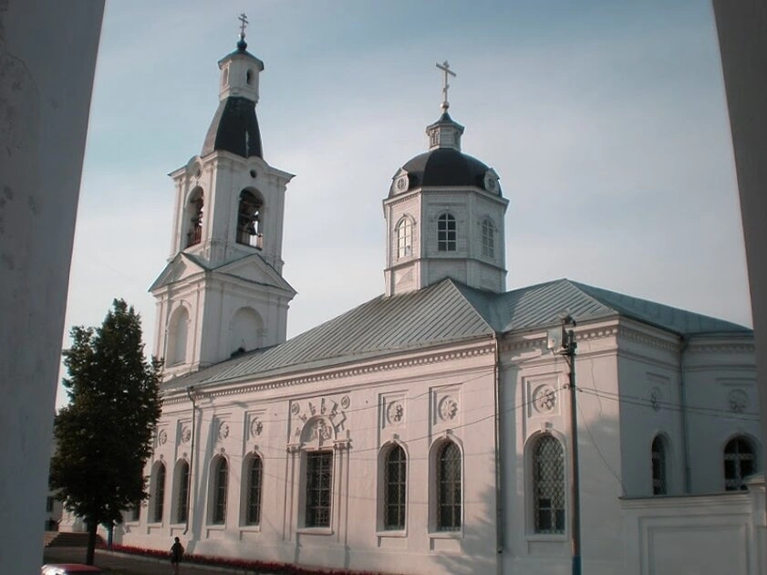 Церковь была возведена в 1794 году и изначально служила тёплым (зимним) храмом для прихожан главного кафедрального собора. Архитектура здания характерна для русского церковного зодчества конца XVIII века и отличается благородной строгостью форм. Храм венчает мощный световой барабан с главкой, а его стены выложены из традиционного для этих мест красного кирпича.