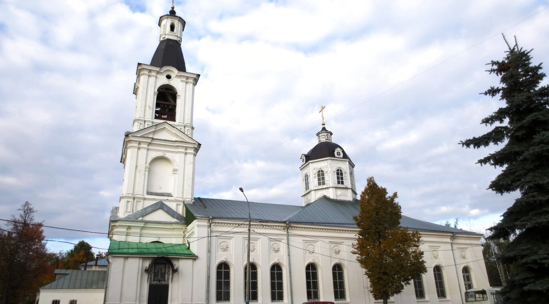 Белоснежный храм, освящённый в честь чудотворной иконы Пресвятой Богородицы, представляет собой прекрасный образец русского церковного зодчества. Высокая многоярусная колокольня, увенчанная остроконечным шпилем и золочёным крестом, горделиво устремляется в небеса. Над основной частью церкви возвышается купол небесно-голубого цвета, также венчаемый крестом. Лаконичность и строгость форм здания характерны для храмовой архитектуры данного периода.