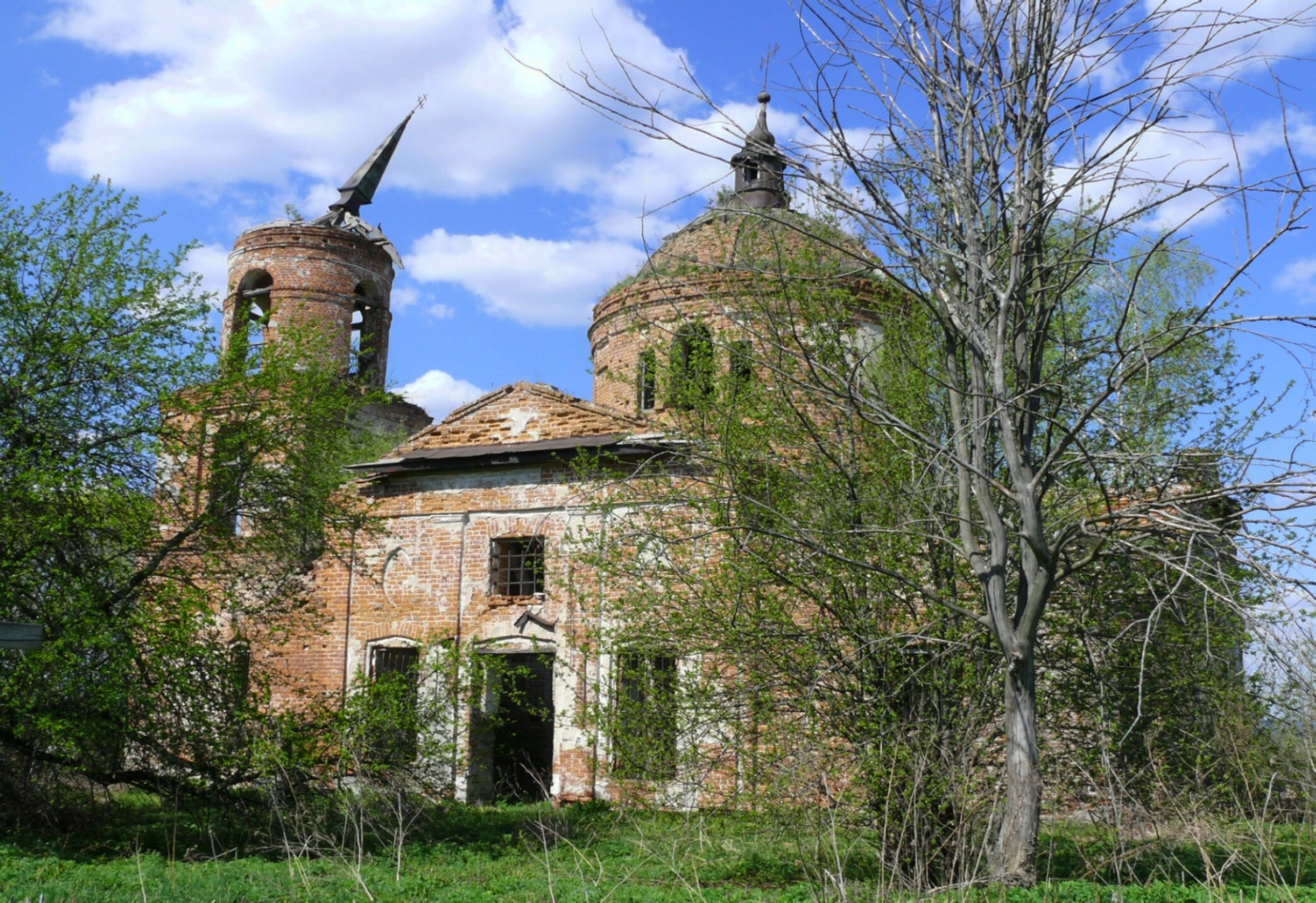 На представленной фотографии запечатлена Церковь в честь иконы Божией Матери «Знамение», расположенная в селе Трубино Жуковского района Калужской области. Храм находится в полуразрушенном состоянии, но даже в своем нынешнем виде сохраняет благородные черты православной церковной архитектуры.