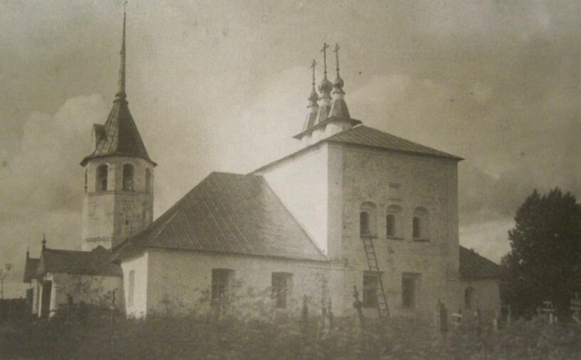 Вход в храм устроен на западном фасаде трапезной и оформлен изящным четырехколонным тосканским портиком с треугольным фронтоном. В 1861-1862 годах церковь была расписана талантливым иконописцем Пошехонской Адриановой слободы Александром Брусняковым, чьи работы сохраняли традиции православной иконописи.