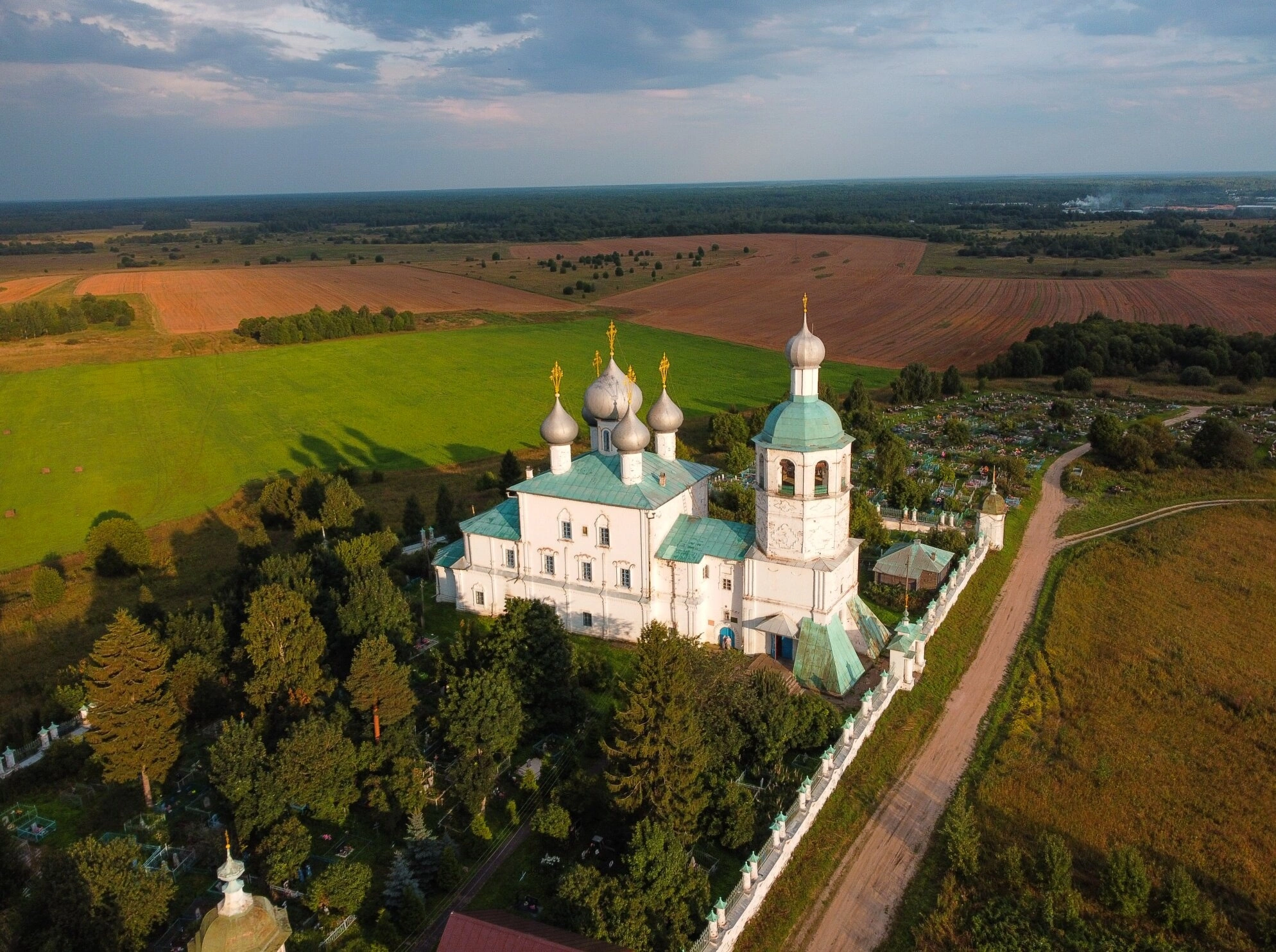Общий план фотографии передаёт величие и простор русского сельского пейзажа с бескрайними полями, лесами и высоким облачным небом, создавая атмосферу благоговения и тишины. Церковь Илии Пророка в Засодимье представляет собой не только архитектурный памятник, но и действующий православный приход, продолжающий многовековые традиции духовной жизни в Вологодском крае.