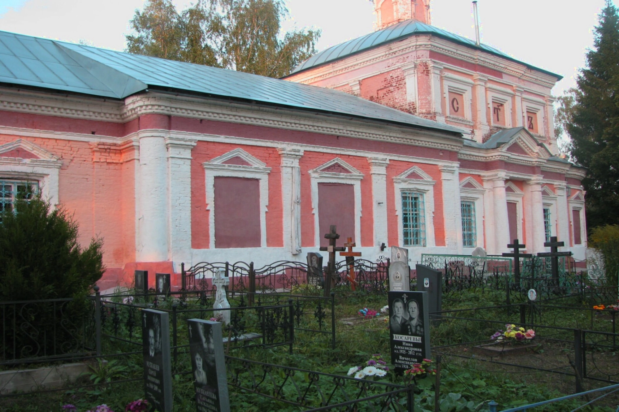 На заднем плане открывается вид на древесные насаждения, обрамляющие храмовый комплекс и подчеркивающие его гармоничное единство с окружающей природой. Местоположение храма в живописной местности Ивановской области добавляет особое духовное значение этому святому месту.