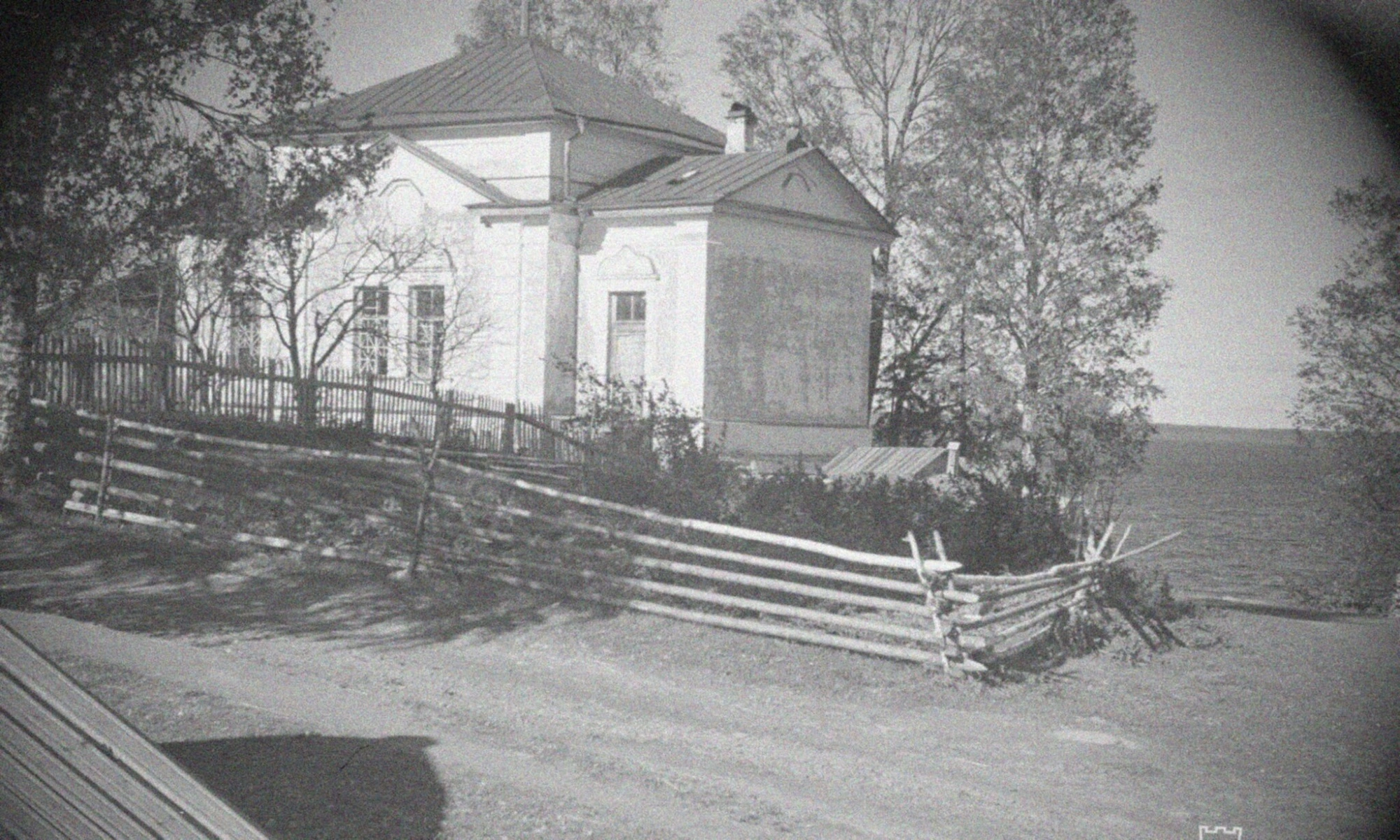 На представленной исторической фотографии запечатлена церковь преподобного Иоанна Рыльского, относящаяся к Вазеозерскому монастырю. Снимок был сделан в период финской оккупации Карелии, о чем свидетельствует водяной знак SA-Kuva, указывающий на принадлежность изображения к финскому военному архиву.