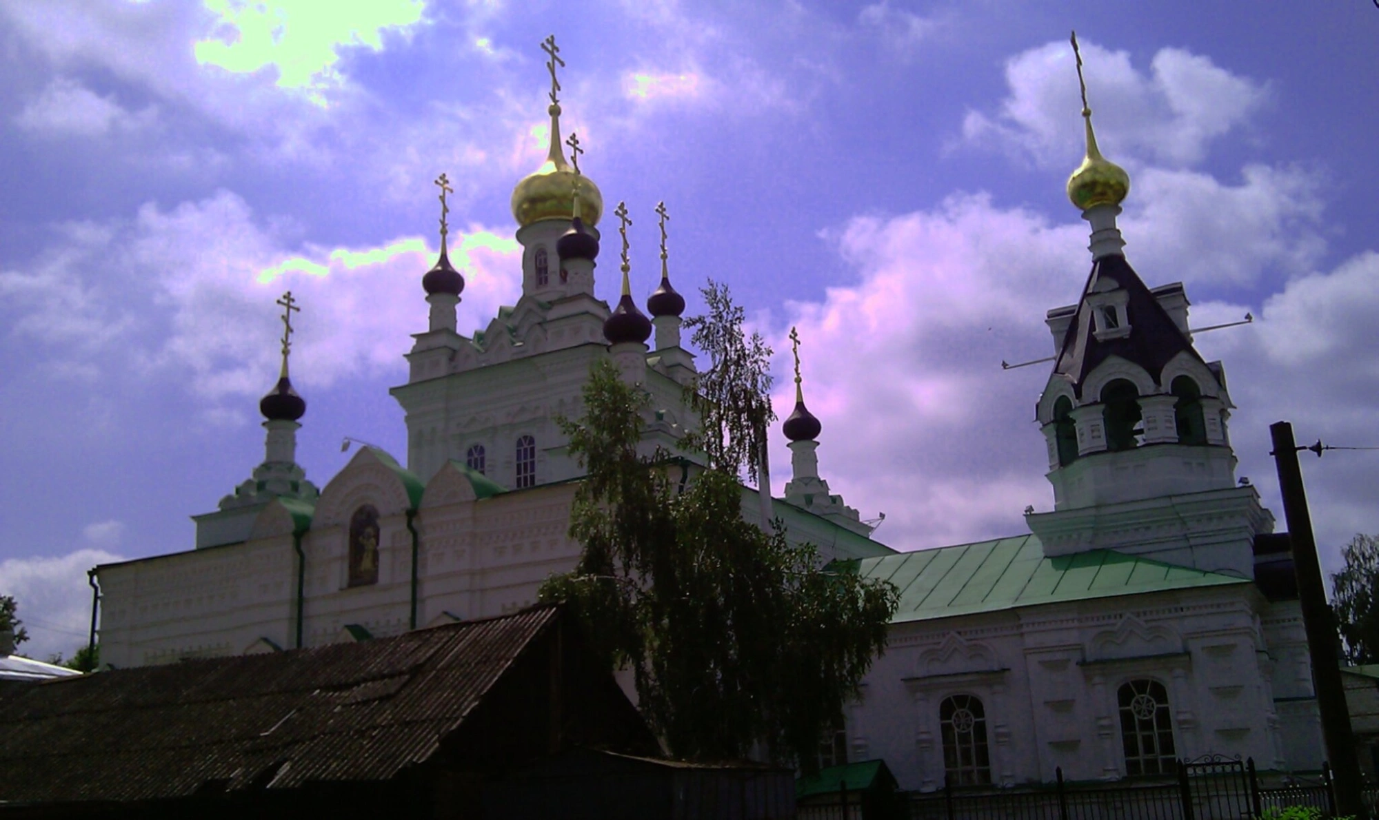 На представленной фотографии запечатлена Церковь Иверской иконы Божией Матери, расположенная в городе Орле на берегу реки Оки. Этот православный храм является одним из значимых духовных центров Орловской епархии и объектом культурного наследия региона.