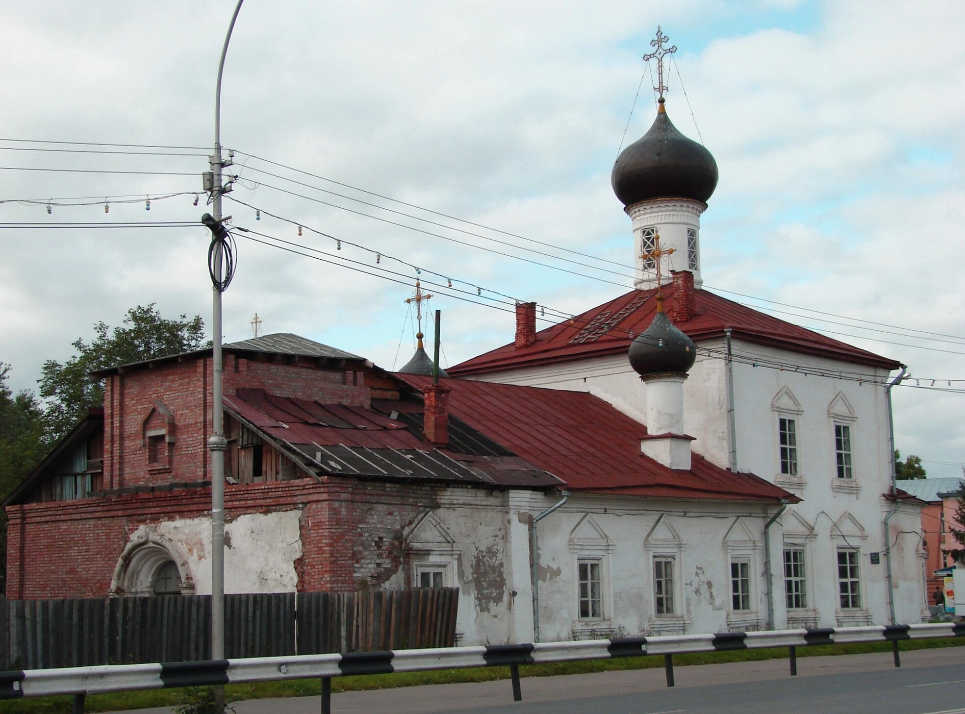 На представленной фотографии запечатлена Церковь Казанской иконы Божией Матери, что на Торговой площади в историческом центре Вологды. Этот православный храм, освящённый в честь чудотворного Казанского образа Пресвятой Богородицы, является выдающимся памятником русского церковного зодчества и неотъемлемой частью архитектурного ансамбля города.