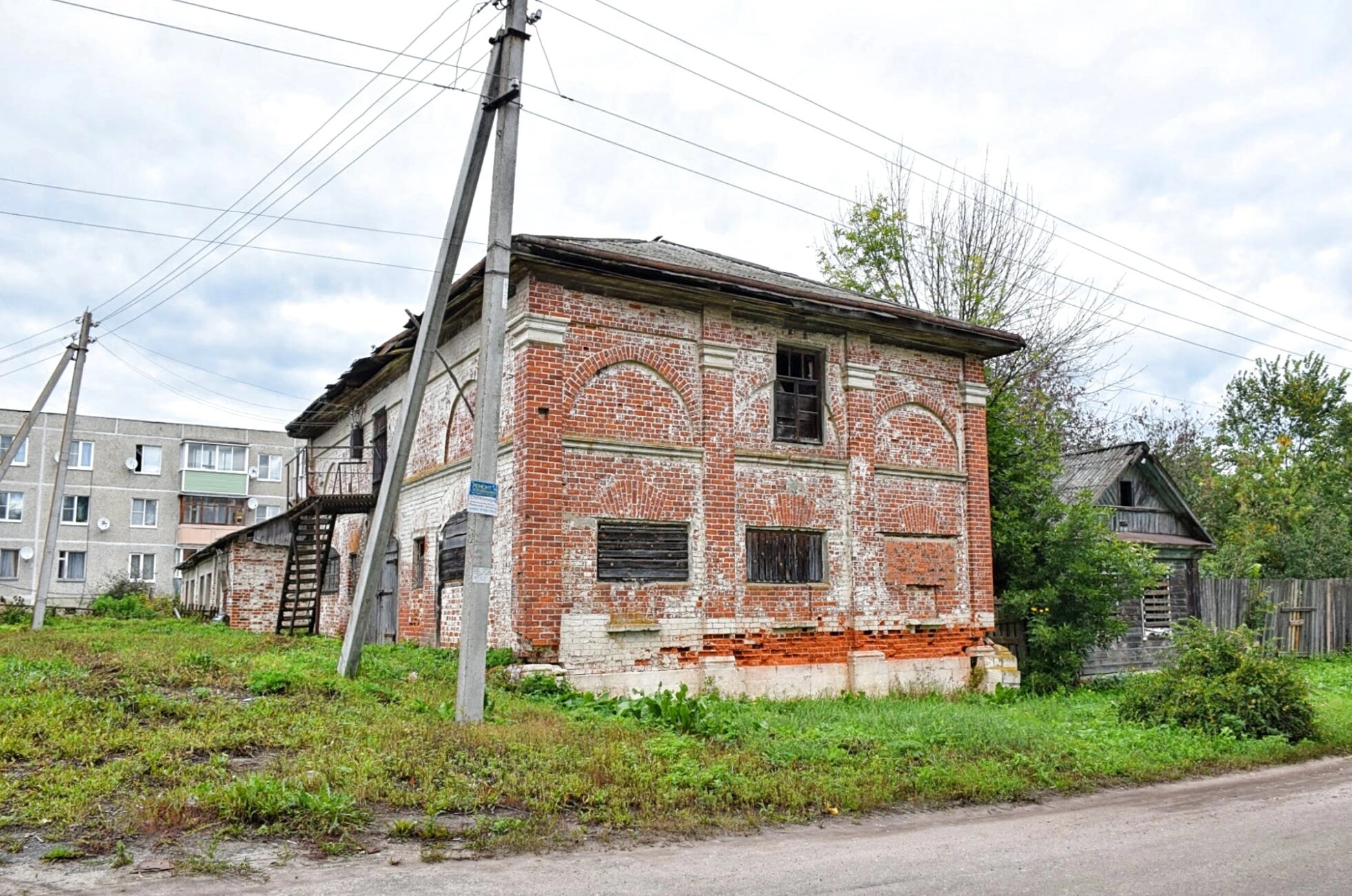 На представленной фотографии запечатлена Церковь Казанской иконы Божией Матери, расположенная в селе Дединово Луховицкого района Московской области. Храм представляет собой двухэтажное кирпичное здание, находящееся в состоянии значительного разрушения. Стены церкви частично сохранили оштукатуренное покрытие с остатками белой краски, однако во многих местах обнажена кирпичная кладка.
